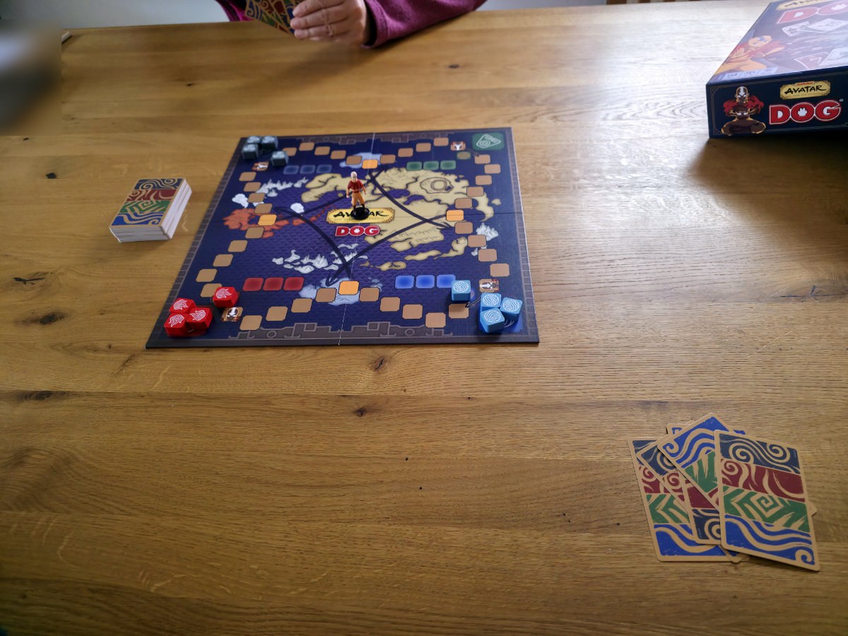 Insgesamt bleibt „DOG Avatar“ dem taktischen Kern von DOG treu, erweitert ihn aber um thematisch stimmige Kniffe. Die Kombination aus bekannten DOG-Mechanismen, den Elementkarten und der Avatar-Figur sorgt für mehr Interaktion und überraschende Wendungen. Wer DOG kennt, wird sich sofort zurechtfinden, aber die Avatar-Edition bringt genug Neues, um auch erfahrene Spieler zu überraschen. Und spätestens wenn der Avatar als scheinbar „guter Geist“ plötzlich zur größten Gemeinheit des Abends wird, zeigt sich, wie clever hier die Brücke zwischen Klassiker und Lizenz geschlagen wurde.