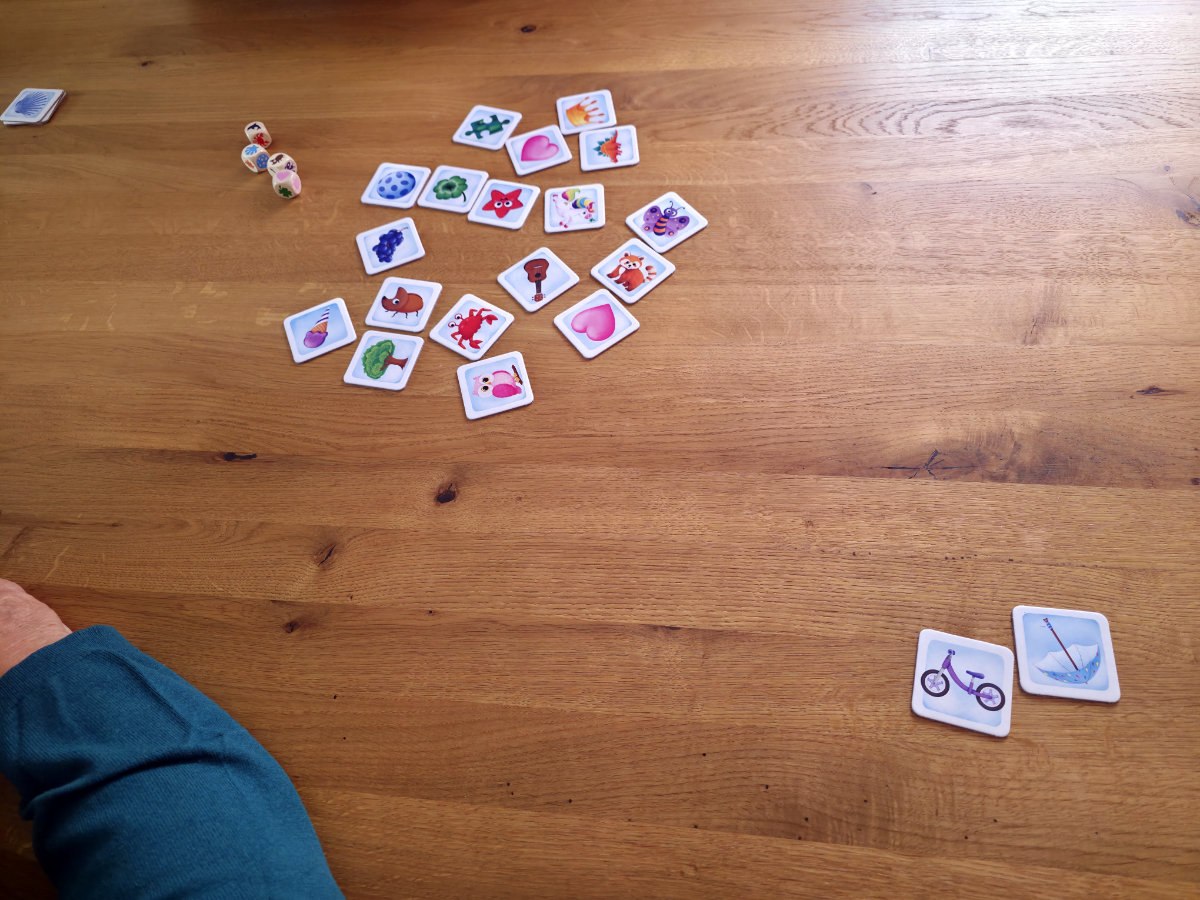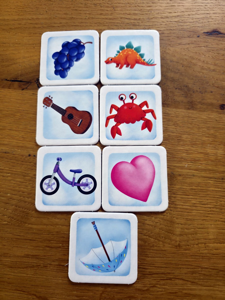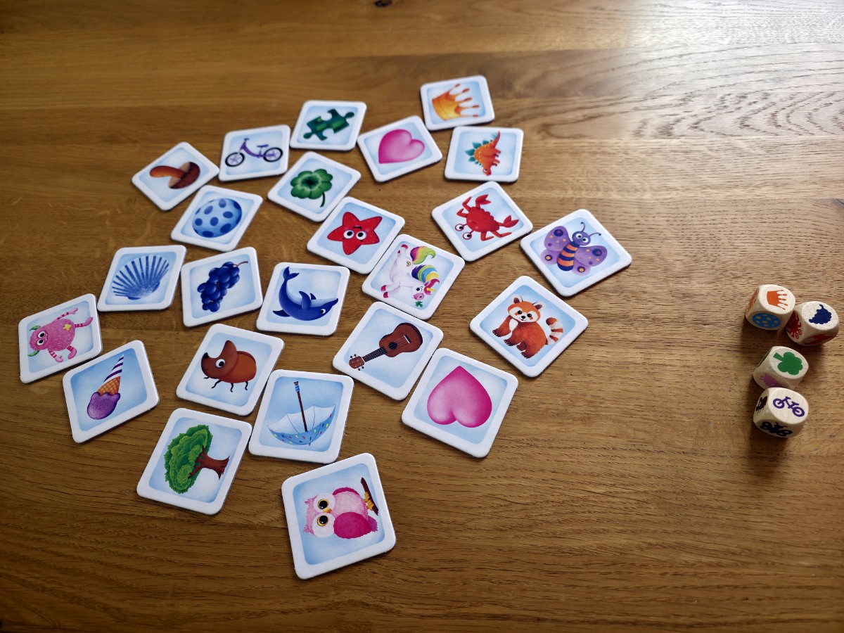„Greif zu!“ ist ein quirliges Kinderspiel, das schon die Kleinsten an den Tisch lockt und sofort für Lachen, Hektik und ein bisschen freundliches Chaos sorgt. Die Regeln sind so einfach, dass man praktisch sofort loslegen kann. Ein Spieler würfelt und alle stürzen sich gleichzeitig auf die Plättchen in der Tischmitte. Gesucht sind die Symbole, die der Würfel vorgibt – wer sie zuerst entdeckt, darf zugreifen. Klingt simpel? Ist es auch! Doch gerade diese Einfachheit macht den Reiz aus, denn die Geschwindigkeit entscheidet. Während die Augen noch über die bunten Plättchen huschen, schnellen schon die Hände der Mitspieler nach vorne und nicht selten greifen gleich mehrere gleichzeitig nach dem selben Symbol. Da wird gelacht, gejubelt und manchmal auch ein bisschen gegrummelt, wenn einem das Plättchen in letzter Sekunde weggeschnappt wird.