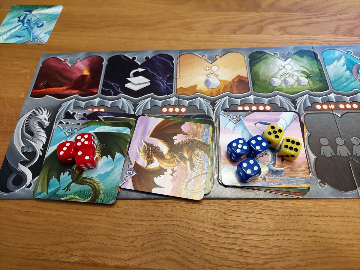 Die Spieler übernehmen die Rollen von Drachenforschern, die ihre Entdeckungen dokumentieren. Auf dem Tisch liegen verschiedene Drachenkarten aus, jede mit eigenem Wert und Symbolen. Reihum setzen die Spieler ihre Würfel als Gebote auf diese Karten. Dabei muss man immer das aktuelle Mindestgebot übertreffen, um eine Karte zu beanspruchen. Wird man überboten, erhält man seine Würfel zurück – allerdings mit einem Bonus von +1 auf den jeweiligen Wert. Dadurch entsteht ein spannender Kreislauf, denn selbst wenn man eine Karte verliert, werden die eigenen Würfel stärker und eröffnen neue Chancen in der nächsten Runde.