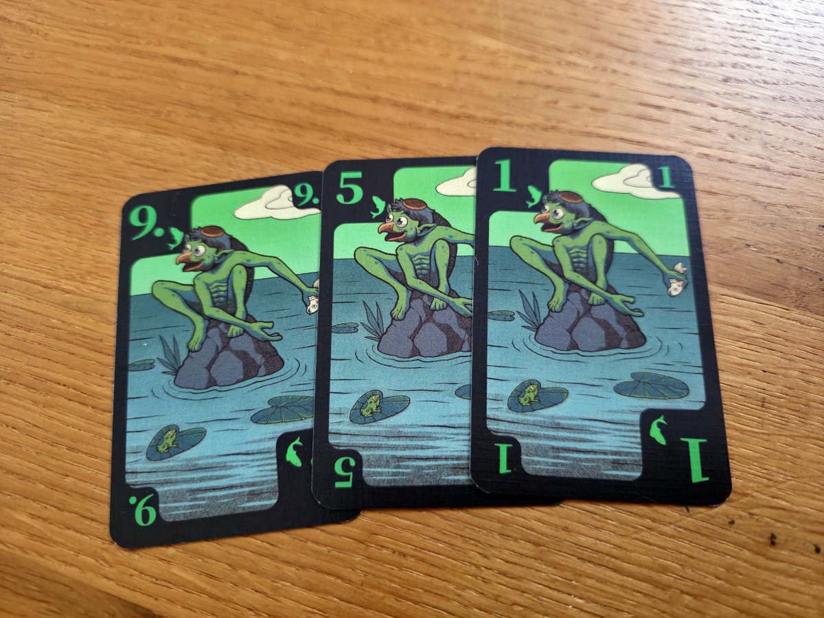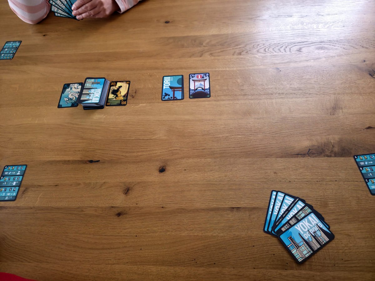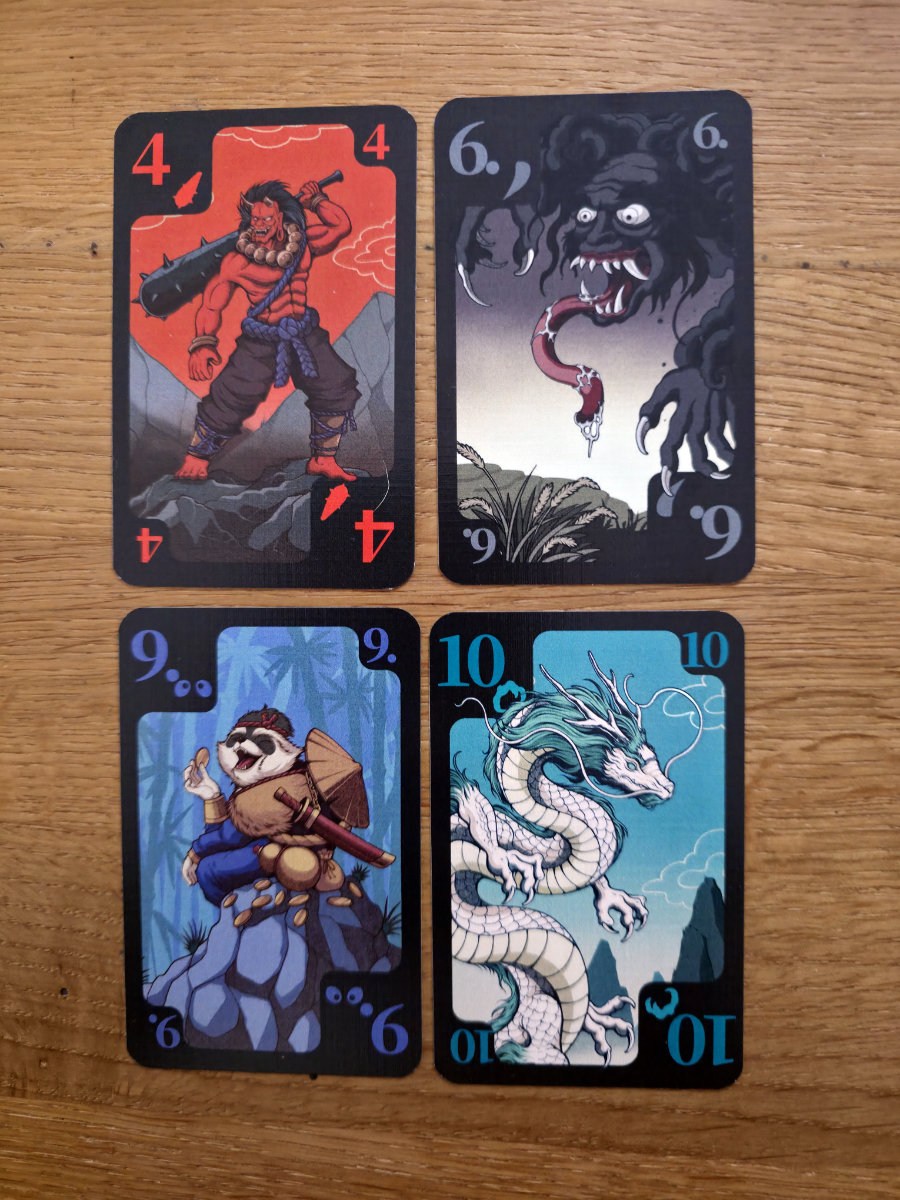 Nicht passend, aber niedriger: Hier kommt der besondere Kniff: Man darf prüfen, ob der Wert der eigenen Hand (berechnet aus den niedrigsten Zahlen jedes vorhandenen Yokai) drei oder weniger beträgt. Ist das der Fall, kann man die Runde sofort beenden, wenn nicht, geht es normal weiter.