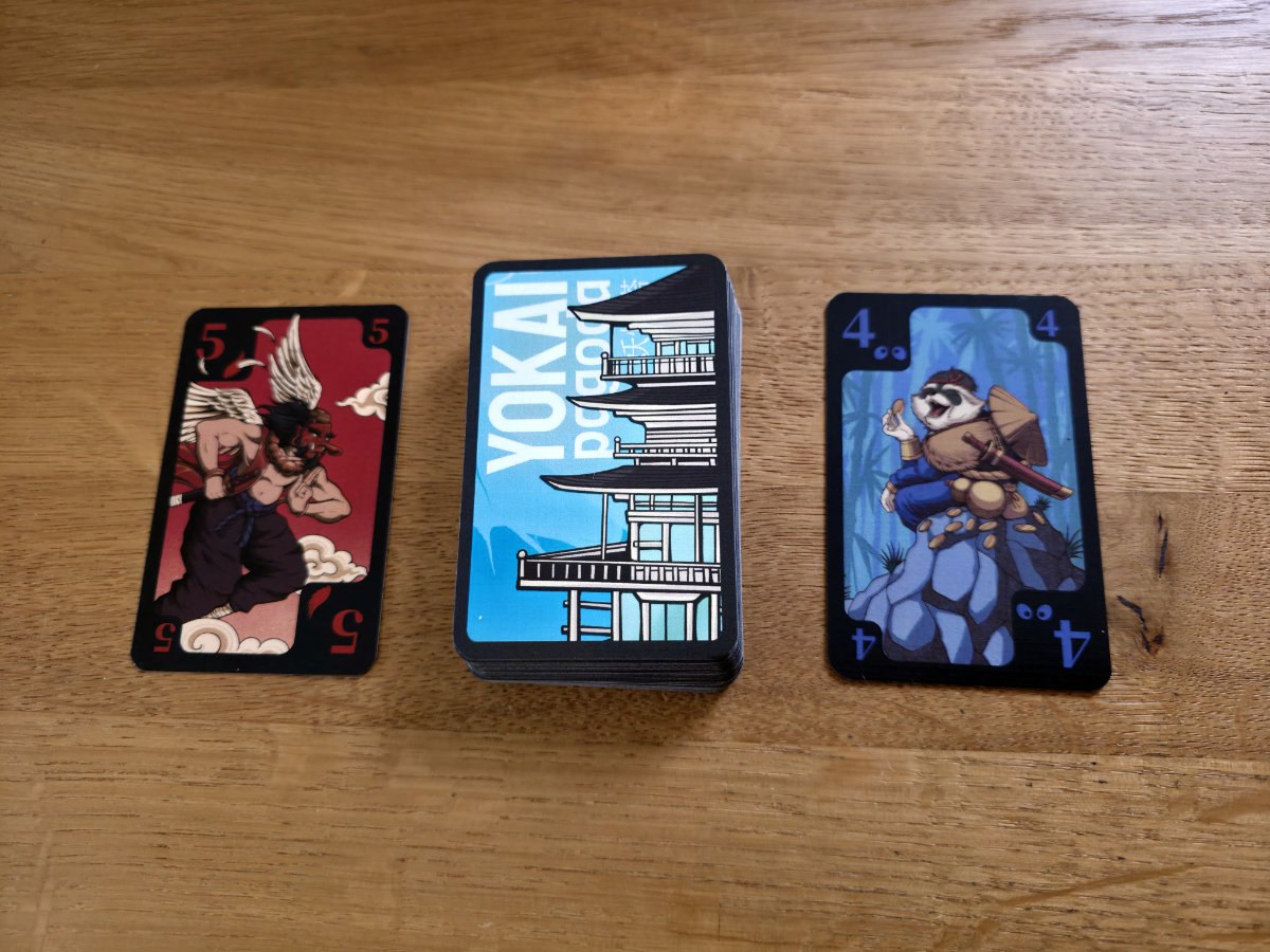 Zu Beginn jeder Runde erhält jeder Spieler sieben Karten aus einem Deck, das aus zehn verschiedenen Yokai besteht, nummeriert von 1 bis 10. In der Mitte liegt die Pagode (der Nachziehstapel) mit zwei offenen Karten, die die Eingänge markieren. Wer am Zug ist, legt eine Karte auf einen dieser Eingänge – und je nachdem, ob die Karte als Yokai oder Zahl mit der darunterliegenden übereinstimmt oder ob sie höher oder niedriger ist, ergeben sich unterschiedliche Konsequenzen.