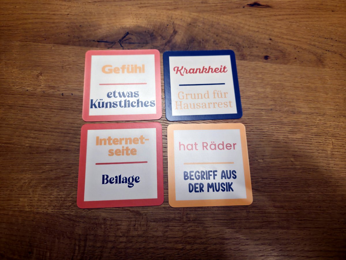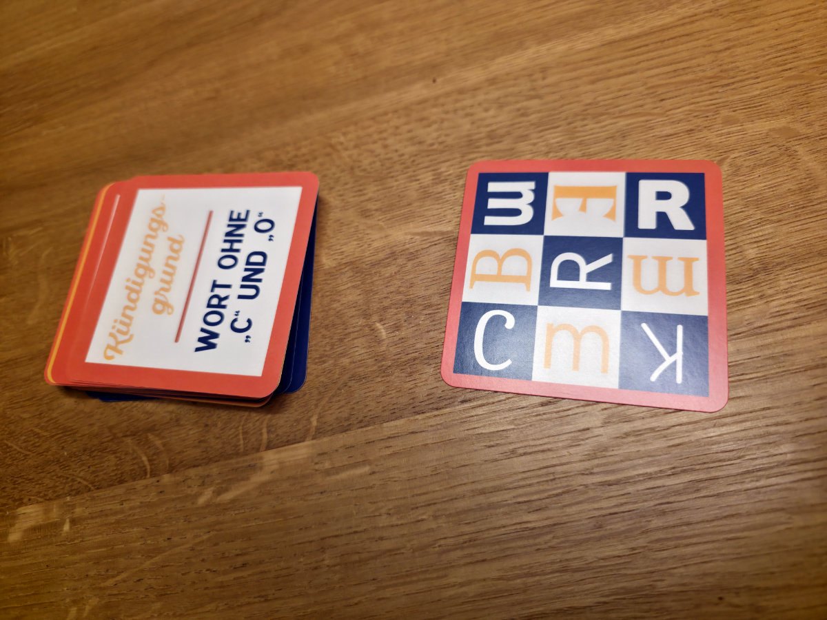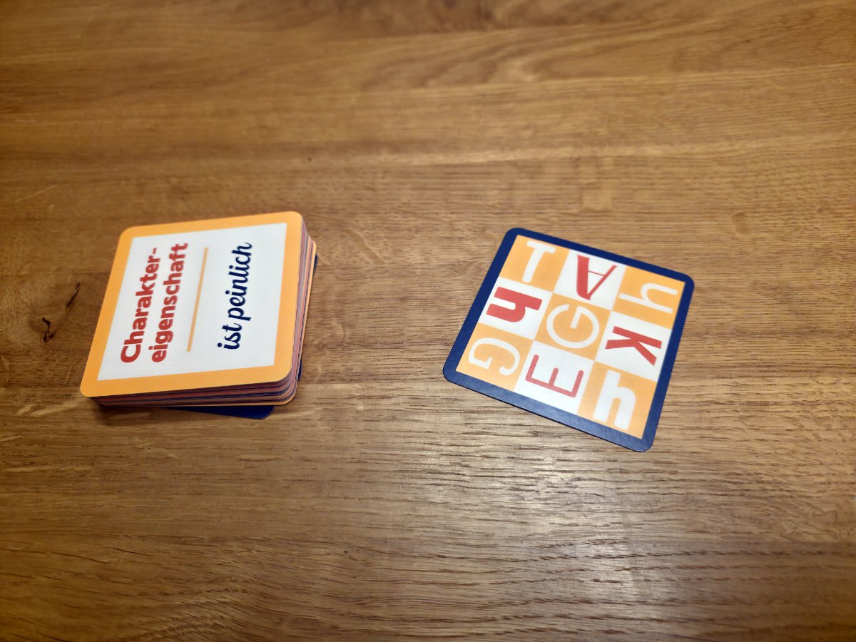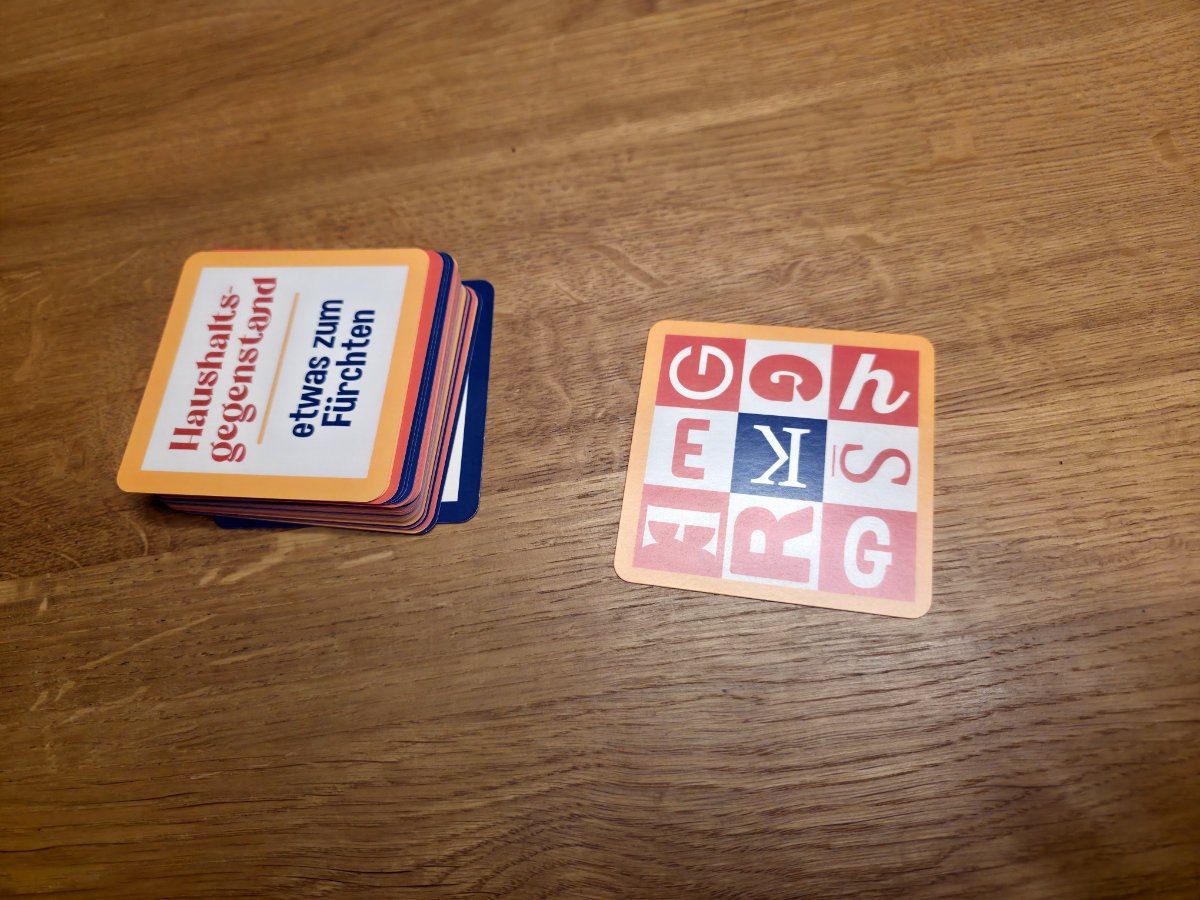 Alle spielen gleichzeitig, es gibt keine Reihenfolge. Geschwindigkeit ist entscheidend, denn wer zuerst einen gültigen Begriff nennt, erhält die Karte als Punkt – falls nicht, muss eine Karte abgegeben werden. Das sorgt für hektisches, aber sehr lustiges Durcheinander am Tisch. Die Karten sind so gestaltet, dass die Buchstabenanordnung immer wieder neue Herausforderungen bietet – kein Spieler hat denselben Buchstaben, und die Designs variieren, sodass die Augen ständig gefordert sind.