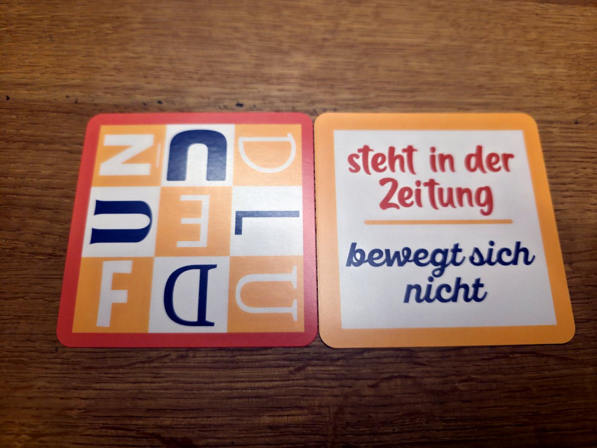 Das Spielprinzip ist rasch erklärt. In der Mitte des Tisches liegt ein Stapel mit speziellen Buchstabenkarten. Jede dieser Karten zeigt ein chaotisches Durcheinander von Groß- und Kleinbuchstaben, die in verschiedene Richtungen gedreht sind. Die Spieler sitzen rund um den Tisch, und jeder betrachtet die Karte aus seiner eigenen Perspektive. Der Clou ist dabei, dass für jeden Spieler nur ein einziger Buchstabe klar lesbar und eindeutig zu erkennen ist – alle anderen sind verdreht oder mehrfach vorhanden. Genau dieser eine Buchstabe gilt für den jeweiligen Spieler und ist sein persönlicher Startpunkt.