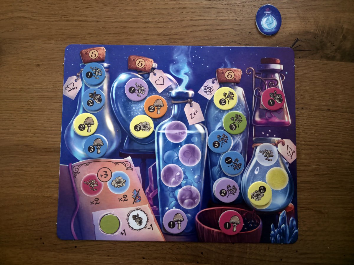 Das Ziel ist es, möglichst viele vollständige Elixire zu brauen. Jedes fertige Gebräu bringt Punkte, und die Freude ist groß, wenn die bunten Fläschchen nach und nach gefüllt werden. Dabei bleibt die Komplexität angenehm familienfreundlich. Kinder können schnell mitspielen, Erwachsene entdecken dennoch die taktische Tiefe, die sich aus der Vorausplanung und dem geschickten Einsetzen der Figuren ergibt.