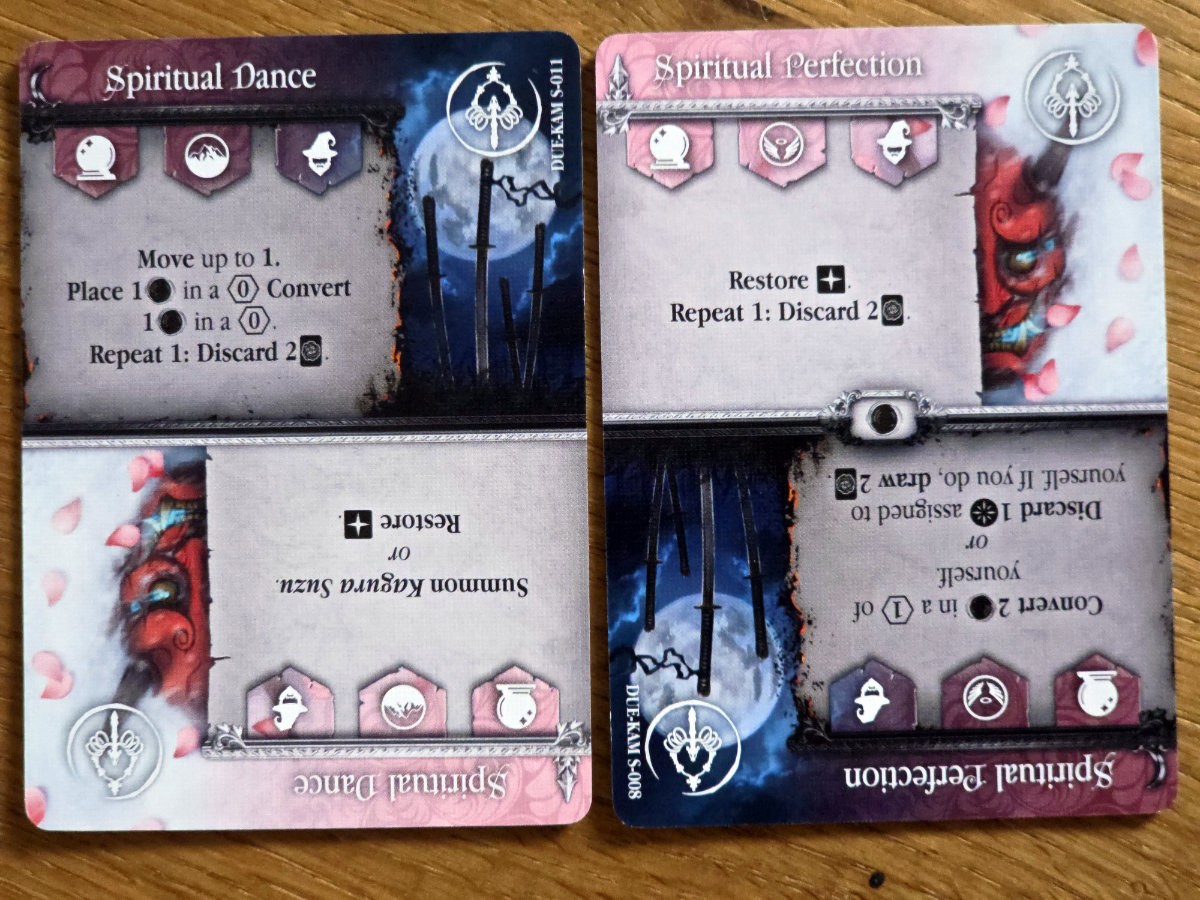 Neuerungen gegenüber den bisherigen Duell-Boxen sind die Portale, die als neue taktische Elemente eingeführt werden. Sie verbinden Räume der Lodge und erlauben unerwartete Bewegungen sowie überraschende Angriffe. Damit wird das Spielbrett dynamischer und eröffnet neue strategische Möglichkeiten. Ein weiterer wichtiger Zusatz ist der Avatar „Mononoke“, ein KI-gesteuerter Gegner, der sowohl im Solo-Modus als auch als dritter Teilnehmer im Duell eingesetzt werden kann. Dadurch eignet sich „Kami“ auch für Spieler, die allein spielen möchten, und erweitert die taktische Tiefe erheblich.