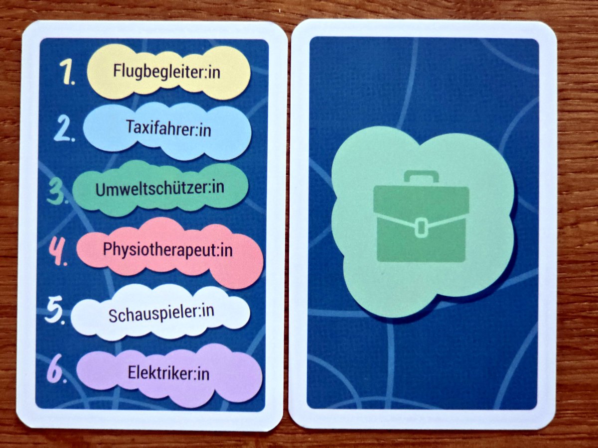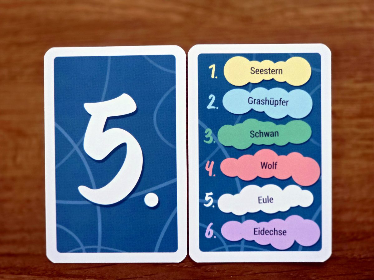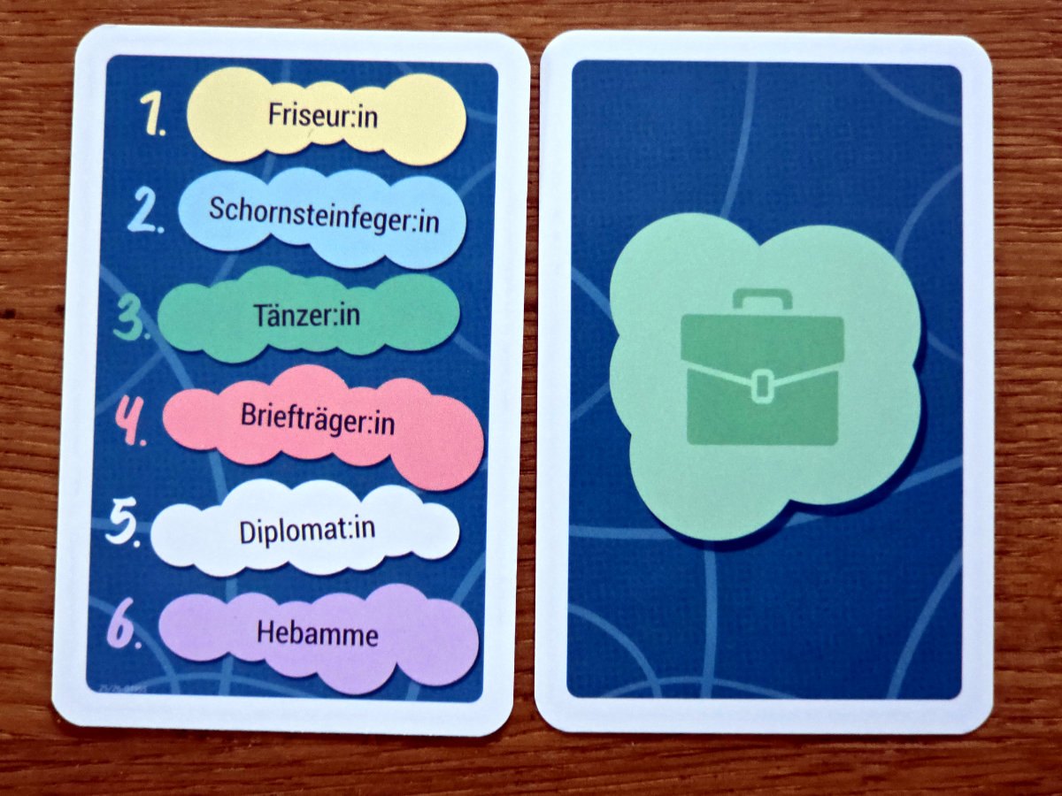 Beim Vorbereiten zieht man eine Kategoriekarte und eine Zahlenkarte, die das Zielwort festlegt.
