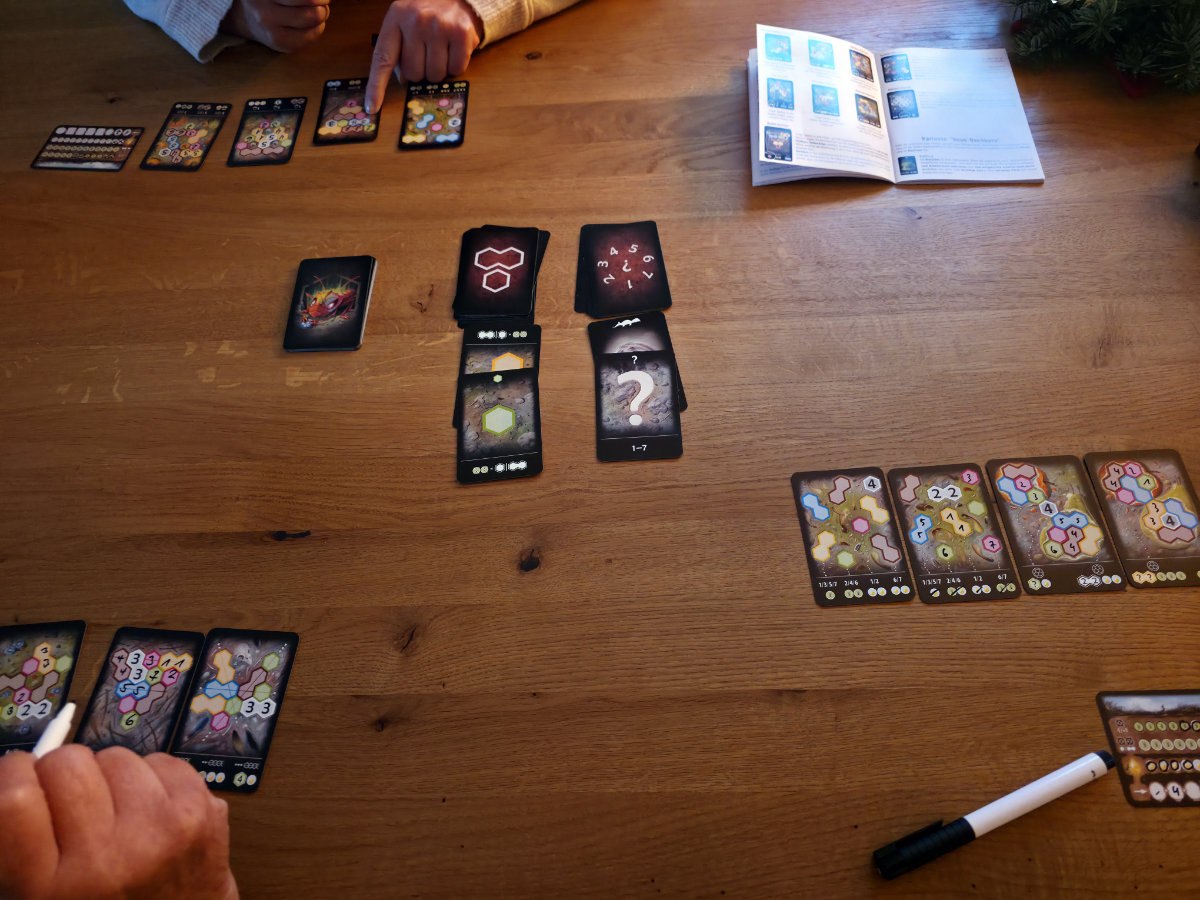 Der Ablauf ist dabei angenehm zugänglich. Alle spielen gleichzeitig und so muss niemand lange warten. Die Entscheidungen sind schnell getroffen, aber dennoch bedeutsam – trägt man die Zahl lieber hier ein, um eine bestehende Straße zu verlängern, oder dort, um eine neue Möglichkeit zu eröffnen?