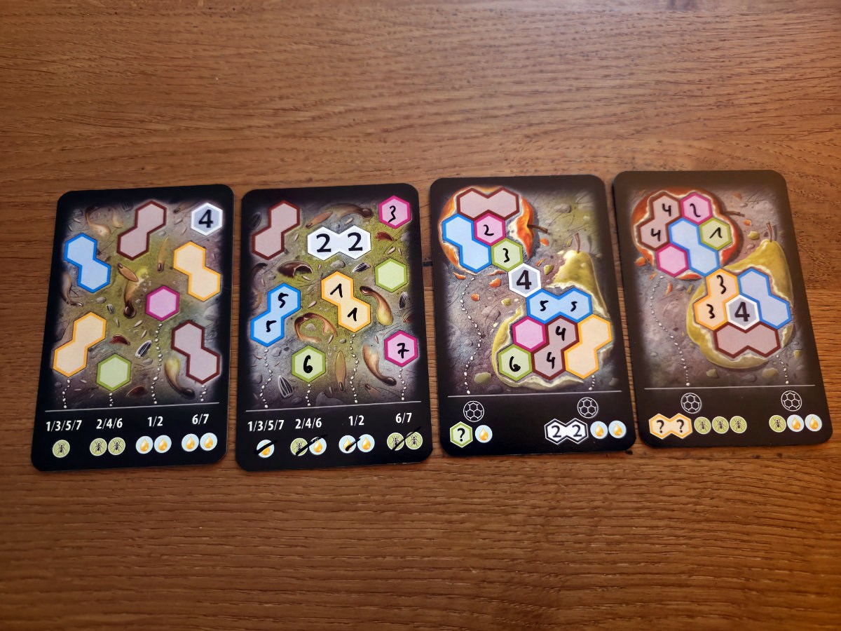 In „FT“ schlüpft man in die Rolle unermüdlicher Ameisen, die über den Waldboden ihre Straßen bauen. Das Herzstück des Spiels sind die Waldbodenkarten, auf denen bunte Formen abgebildet sind. Runde für Runde werden Zahlenkarten und Formenkarten aufgedeckt – diese Kombination bestimmt, welche Zahl in welche Form eingetragen werden darf. So entstehen nach und nach aufsteigende Zahlenreihen, die sich wie kleine Ameisenstraßen über eure Karten ziehen. Je länger und zusammenhängender diese Straßen am Ende sind, desto mehr Punkte bringen sie euch.
