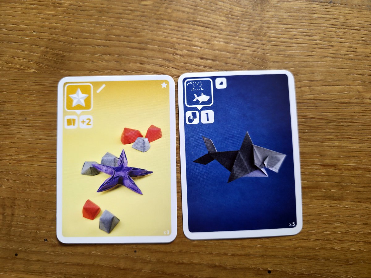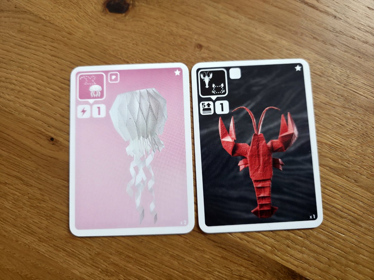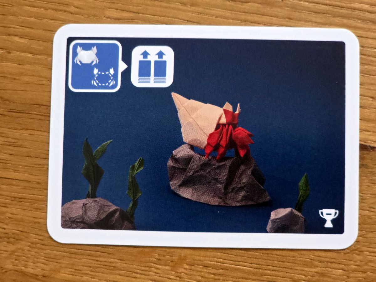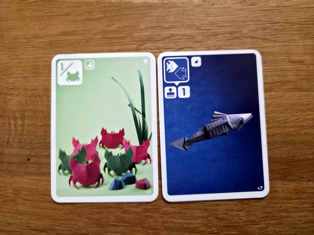 Schon beim Öffnen der Schachtel fällt die besondere Gestaltung ins Auge. Die Karten zeigen kunstvolle Origami-Figuren – Boote, Fische, Krabben, Seepferdchen und andere Meeresbewohner, die aus gefaltetem Papier zum Leben erweckt wurden. Diese Bilder sind nicht nur dekorativ, sondern verleihen dem Spiel eine poetische Atmosphäre, die sofort fesselt.