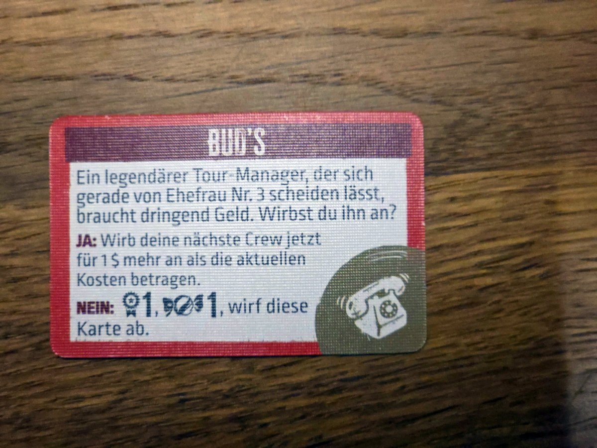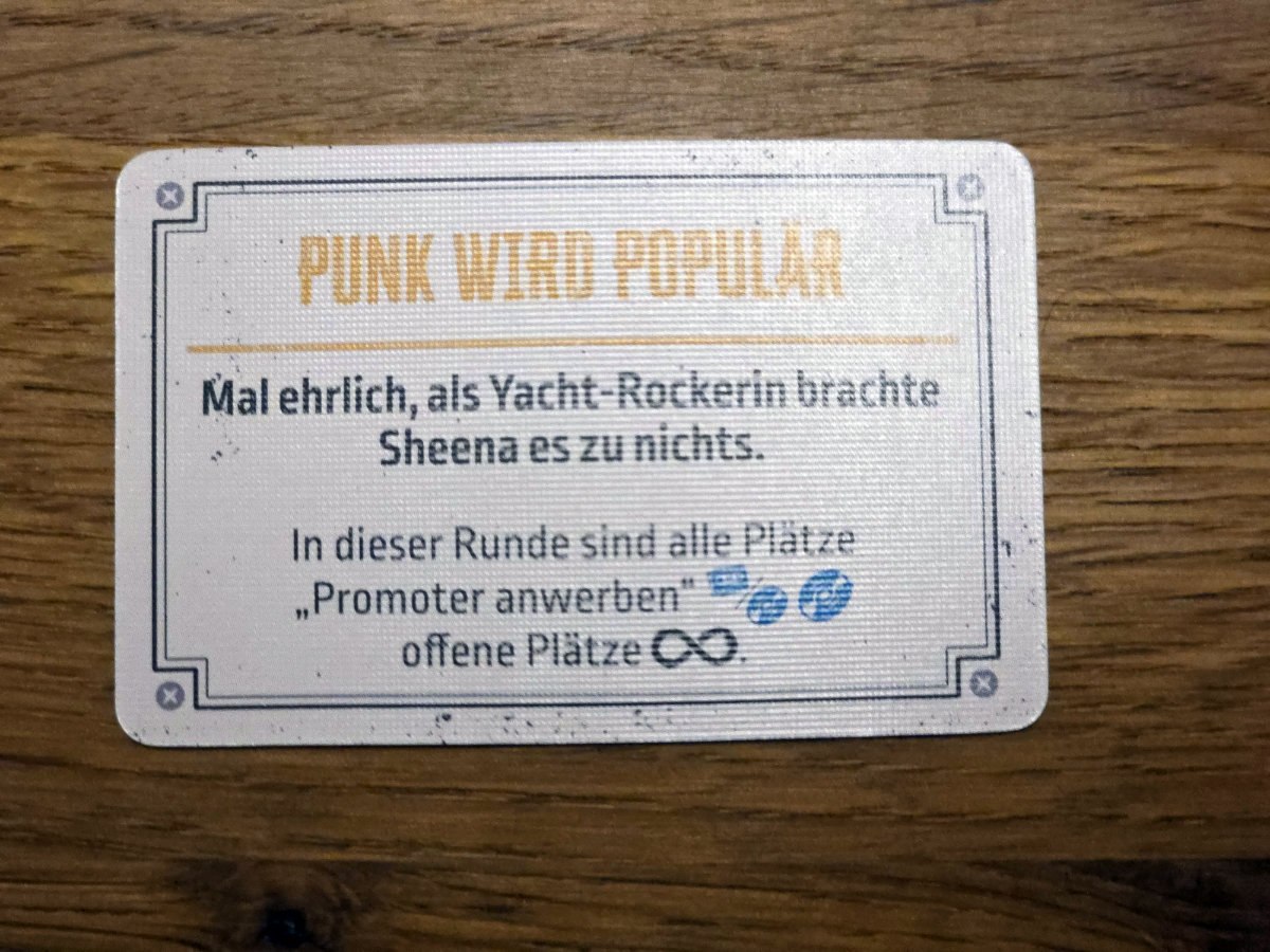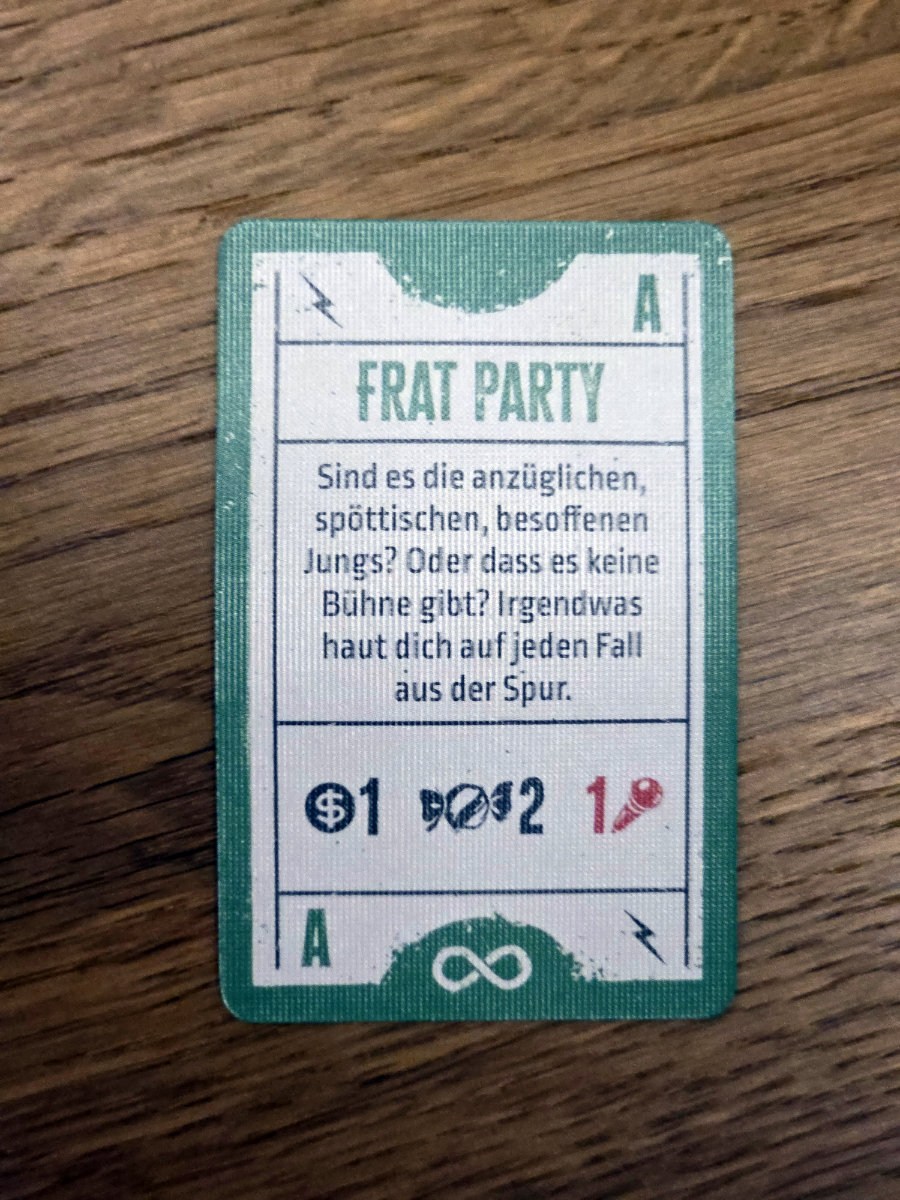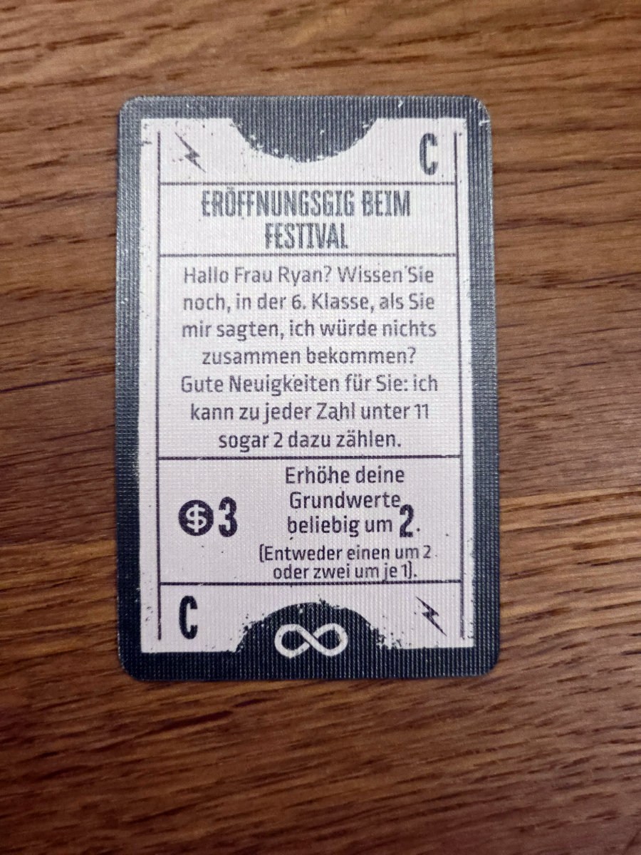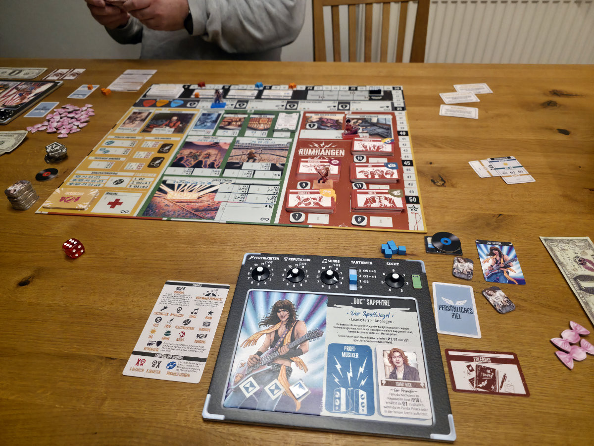 Das Spiel lebt auch stark von Ereigniskarten und Zufällen. Spontane Gigs, skurrile Begegnungen oder unerwartete Rückschläge prägen die Geschichte der Band. Diese Mischung aus Strategie und Chaos sorgt dafür, dass jede Partie anders verläuft. Mal lacht man über absurde Situationen, mal bangt man um einen entscheidenden Würfelwurf.