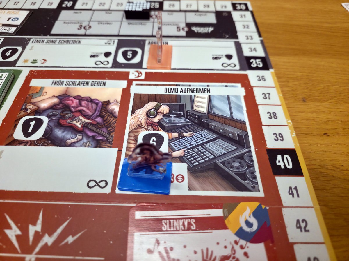Der Spielablauf ist dynamisch und so folgt nach der Planungsphase die Ausführungsphase, in der die gewählten Aktionen abgehandelt werden. Besonders spannend sind die Konzerte, bei denen man seine Songs präsentiert. Hier entscheidet sich, wie viele Fans man gewinnt und ob man den Ruhm steigern kann. Die Qualität der Songs, die Energie der Band und die investierte Vorbereitung spielen eine große Rolle. Gleichzeitig muss man stets im Blick behalten, dass die Bandmitglieder nicht überlastet werden – zu viele Proben oder Auftritte können ihre Energie erschöpfen und sie im nächsten Monat einschränken.