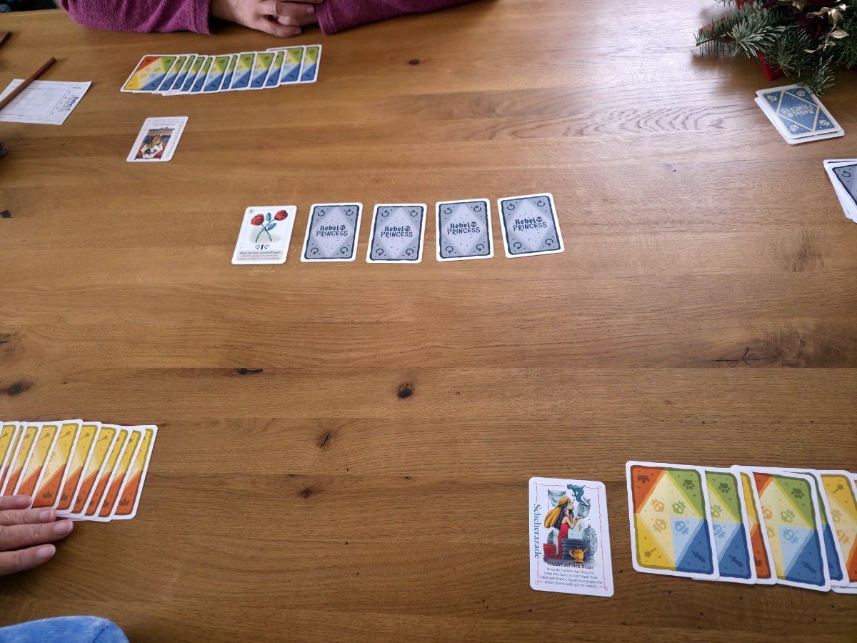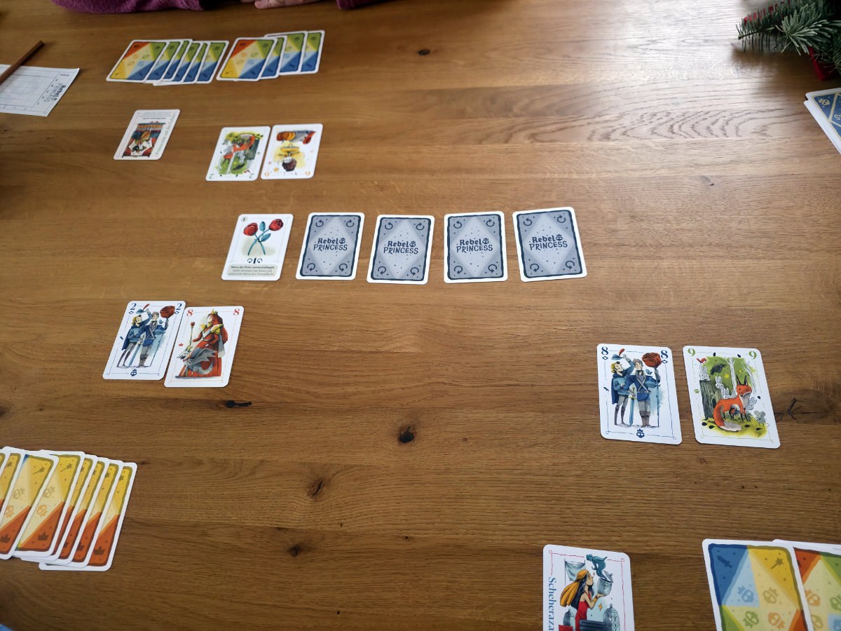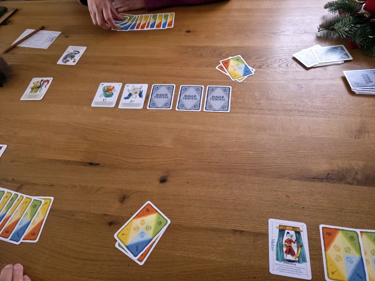 Review-Fazit zu „Rebel Princess + Erweiterung“, einem grafisch hübschen Stichspiel.