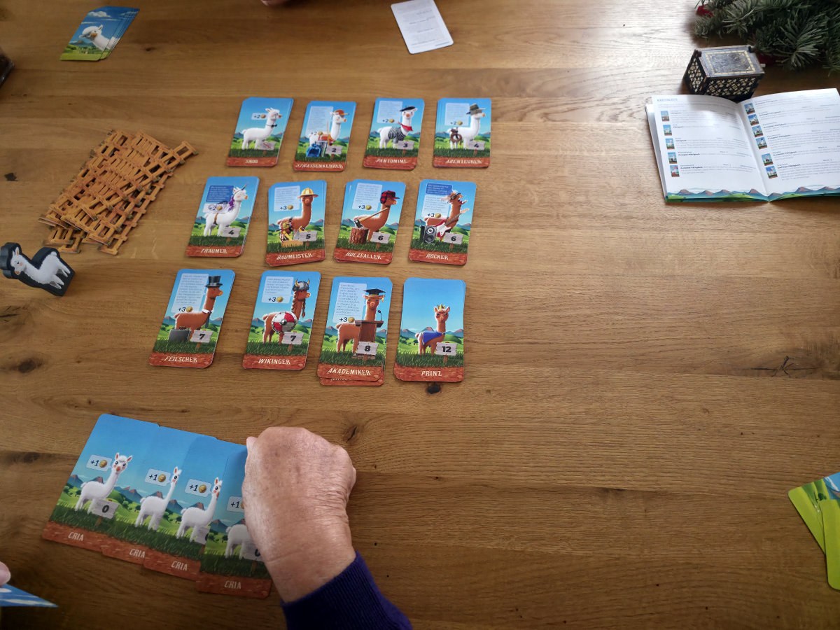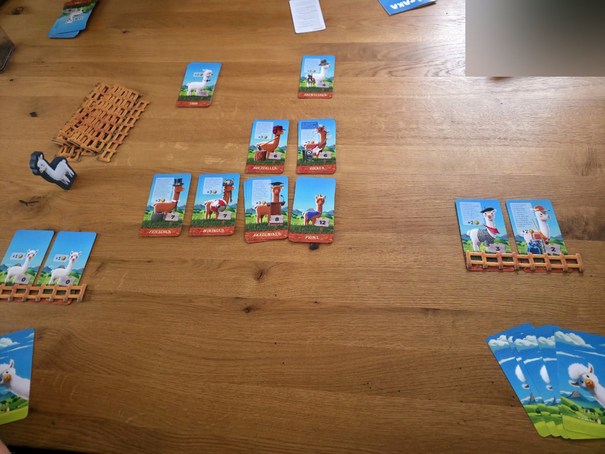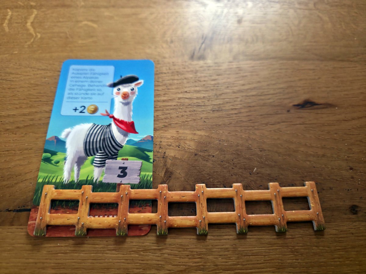 Der Zug besteht aus einem bisschen Deckbau und einem bisschen Chaos. In seinem Zug darf man beliebig viele Alpakas ausspielen, um ihre Fähigkeiten zu nutzen, einmal ein Alpaka kaufen und einmal ein Alpaka in ein Gehege setzen. Die Reihenfolge ist frei – und das macht das Spiel etwas taktisch, aber nie wirklich verkopft.