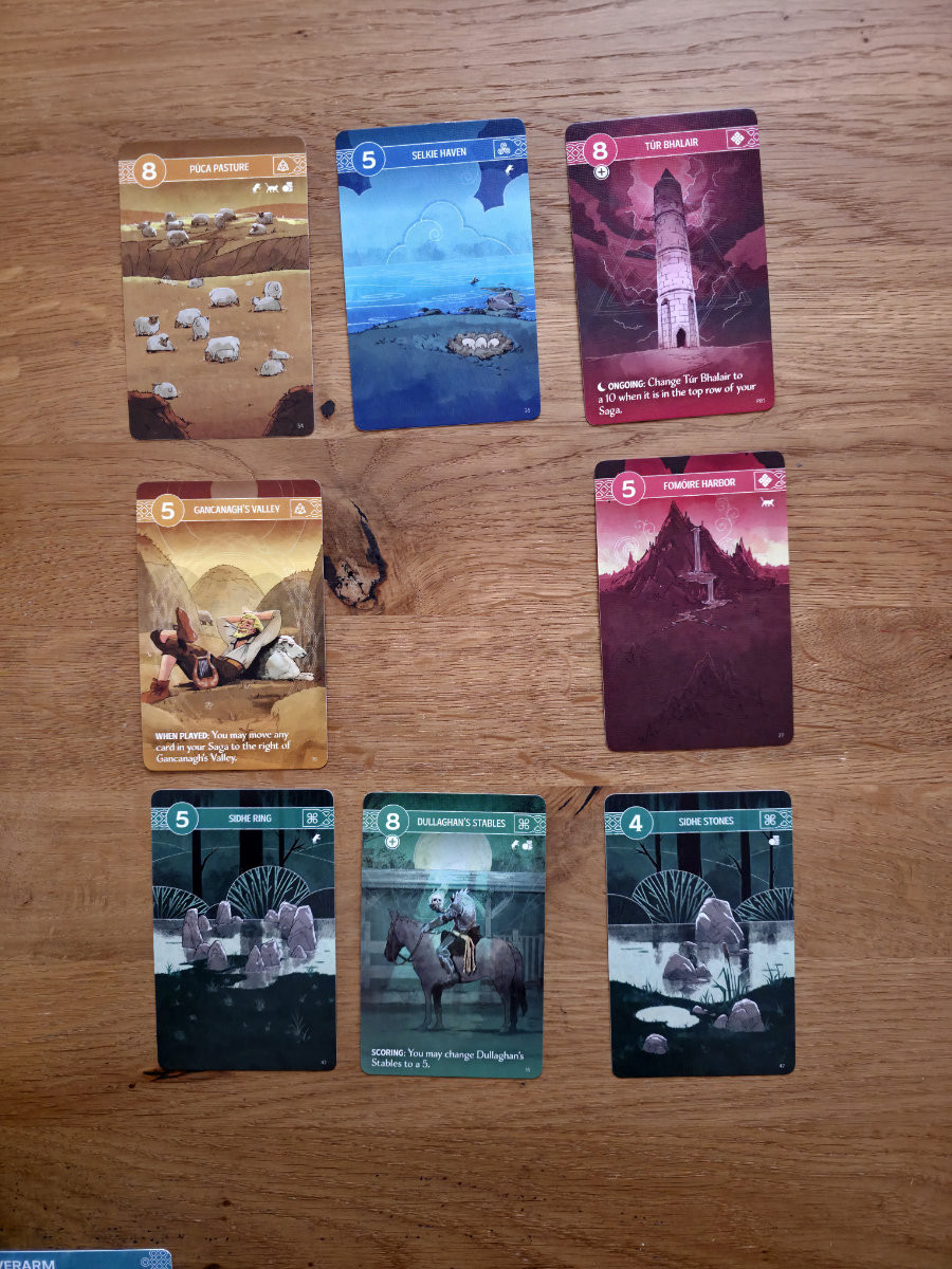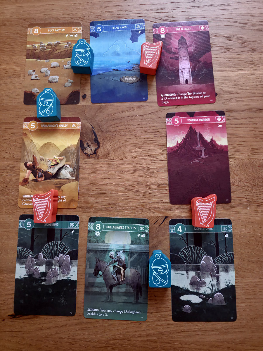 Wer Freude an Tableau-Building, variablen Wertungszielen und einem stimmungsvollen, sorgfältig recherchierten Setting hat, findet hier eine sehr stimmige Mischung. Und wer sich auf die irische Mythologie einlässt, merkt schnell, man puzzelt nicht einfach Karten – man komponiert eine Sage, von der man hofft, dass sie die Zeit überdauert. Auch die schicken und wertigen Spielkomponenten (dieser Edition) und Illustrationen tragen ihren Teil zu der schönen Spielatmosphäre bei.