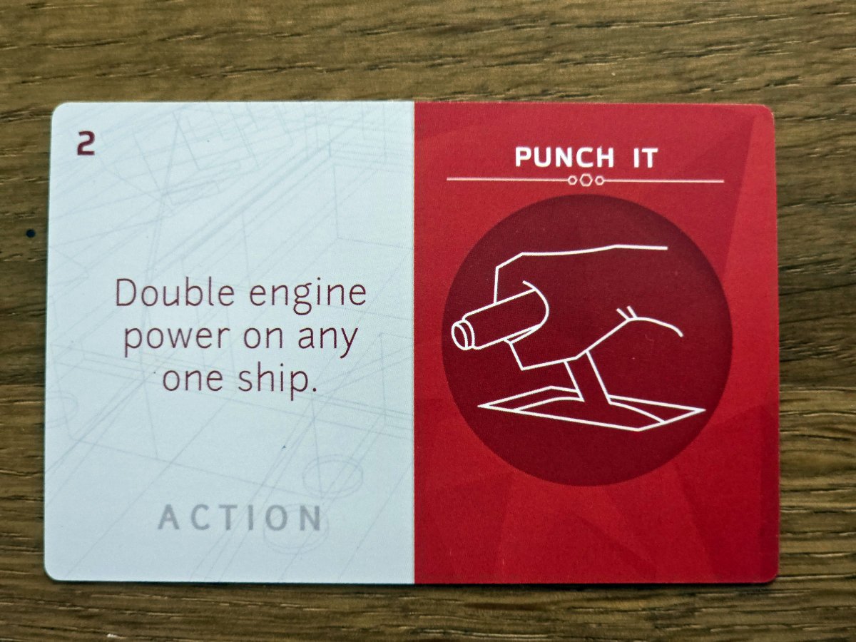 Diese Ressourcen fließen dann in zwei Dinge, Aktionskarten – einmalige Effekte, die Kämpfe drehen können, Bewegungen ermöglichen oder gegnerische Systeme sabotieren – oder in den Technik-Baum – dauerhafte Verbesserungen, die die eigene Flotte spezialisieren.