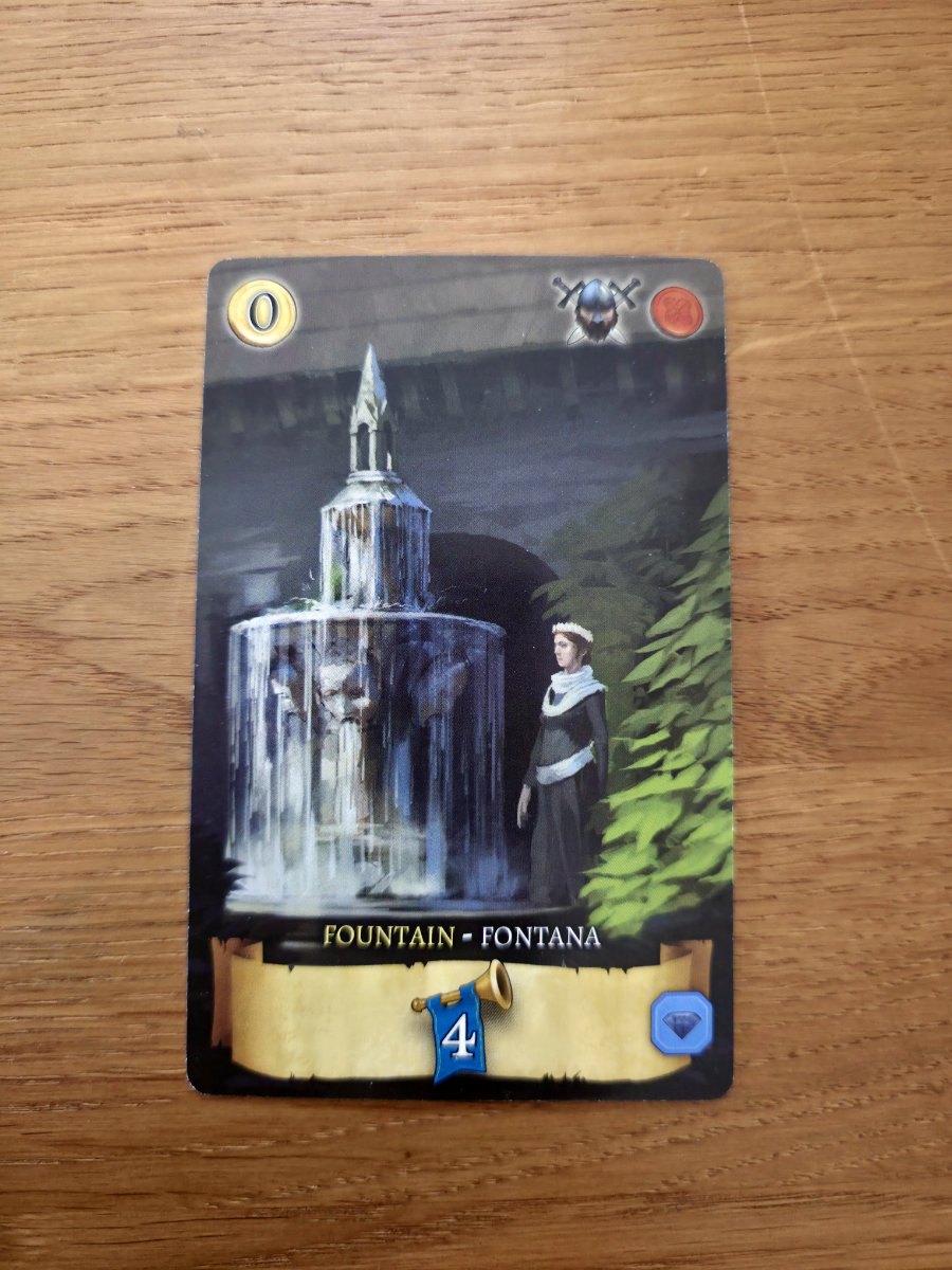 Jede Runde bekommt man eine Karte vorgelegt, doch die eigentliche Würze entsteht dadurch, dass sie jederzeit gegen eine andere offene Karte getauscht werden kann – sei es gegen die eines Mitspielers oder von einer der beiden Auslagen in der Tischmitte. Dieser kleine Mechanismus sorgt für erstaunlich viel Interaktion. Wer fremde Karten mopst, muss erst die Handelsaktionen der neuen Karte ausführen, was mal Geld bringt, mal Geld kostet und manchmal sogar eine Invasionsmarke auslöst. So entsteht ein ständiges Abwägen zwischen „Will ich das Gebäude wirklich?“ und „Kann ich mir die Konsequenzen leisten?“.
