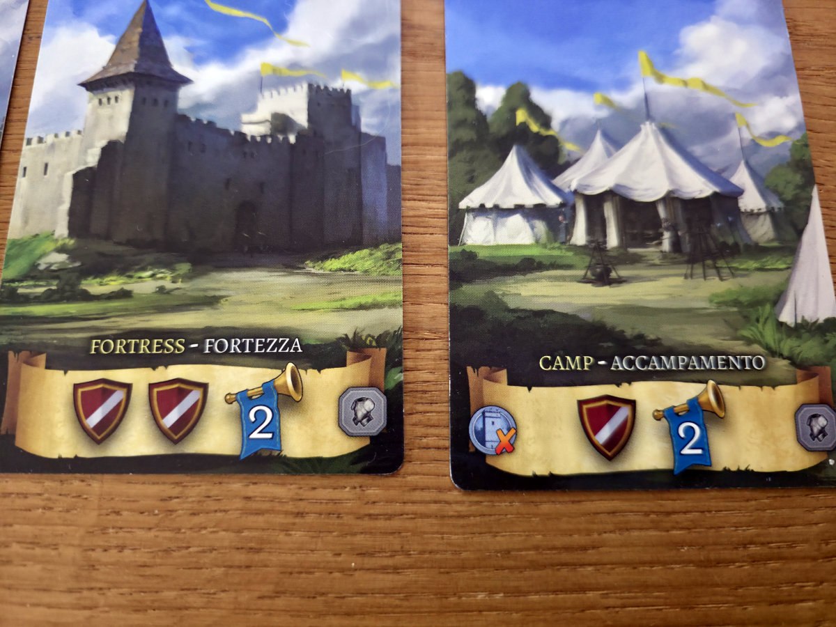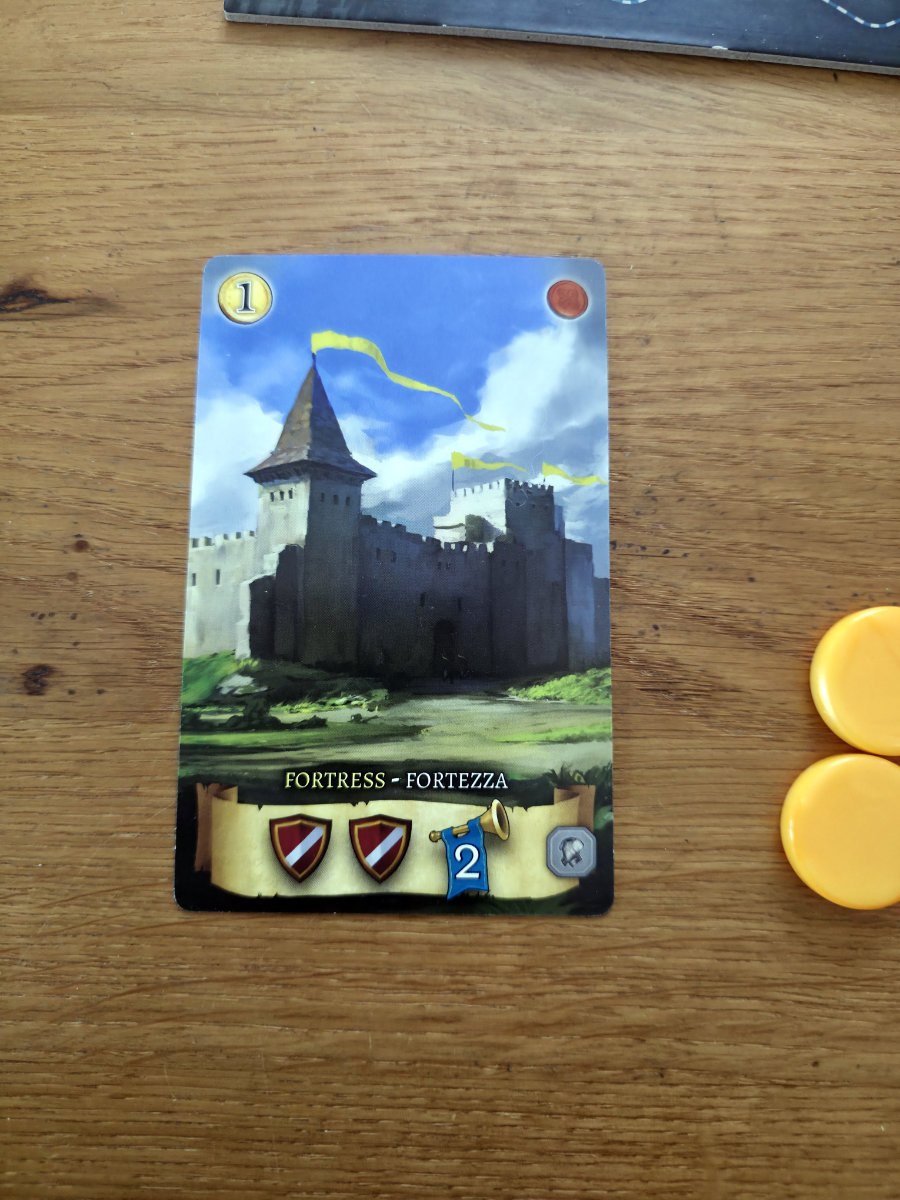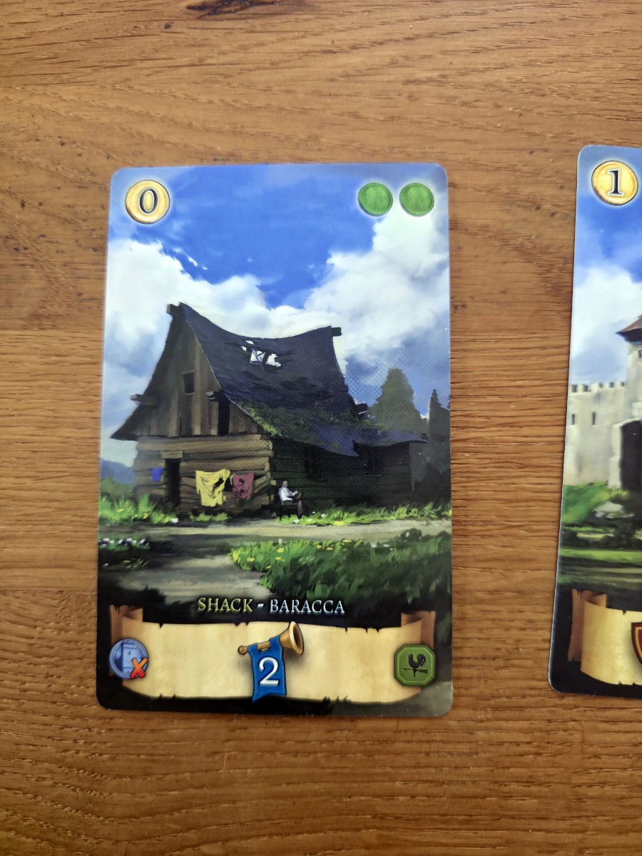 Gebaut wird entweder offen – für Punkte, Effekte und Synergien – oder verdeckt als Bastion, die die eigene Verteidigung stärkt. Und diese Verteidigung braucht man, denn nach Runde vier und acht rollen die Invasoren an. Wer nicht genug Schilde hat, verliert ein Gebäude, was sich im kleinen Königreich sofort schmerzhaft bemerkbar macht. Gleichzeitig winken am Ende Bonuspunkte, wenn man die zweite Invasion erfolgreich abwehrt, was das Spiel in ein herrlich nervöses Ressourcen‑Management verwandelt – baut man nun für Punkte oder für Schutz?