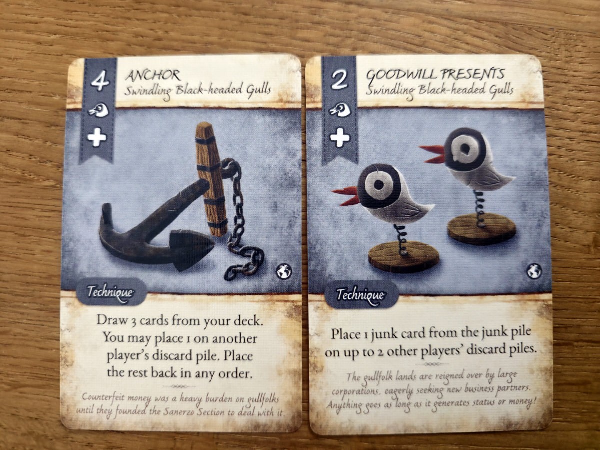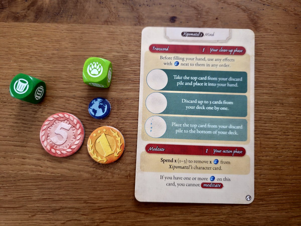 Jedes Deck hat eine eigene Identität, die sich mechanisch wie thematisch spürbar zeigt. Und die neuen Module der Collection bietet ferner „Charakterkarten“, die jedem Spieler eine asymmetrische Fähigkeit verleihen – von subtil bis völlig spielverändernd. Die Anleitung beschreibt sie als „unique powers that drastically influence the game“, aber sie bringen „nur“^^ frischen Wind hinein, ohne das Grundspiel zu überladen.