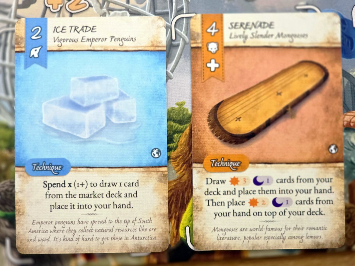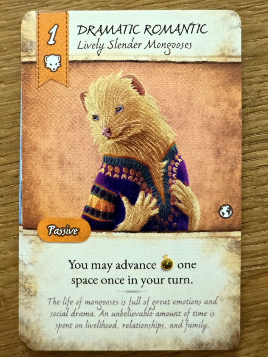 Zum Beispiel: „Snappy Scarlet Macaws“: Handmanagement und Opportunismus, „Thieving Northern Raccoons“: Gemeine Interaktion, „Systematic Eurasian Beavers“: Langfristige Pläne und verzögerte Effekte, „Friendly Fennec Foxes“: „Hilfreiche“ Manipulation anderer Spieler, „Fickle Giant Pangolins“: Chaos pur, „Vigorous Emperor Penguins“: Mächtige Effekte mit hohen Kosten.