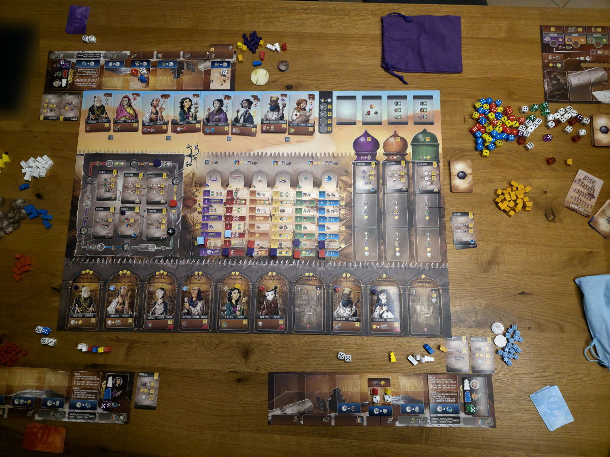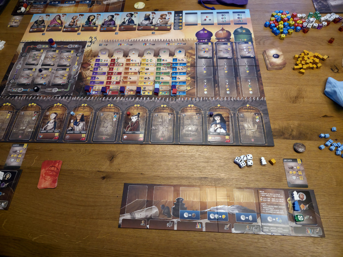 Das Spielgefühl ist anspruchsvoll, belohnend und stark verzahnt. Alles greift ineinander. Würfel beeinflussen Aktionen, Aktionen beeinflussen Forschung, Forschung beeinflusst Einkommen, Einkommen beeinflusst Übersetzungen, und Übersetzungen beeinflussen die Siegpunktquellen. Jede Partie entwickelt sich anders, abhängig von den verfügbaren Übersetzern, den Schriftrollen, der eigenen Würfelzusammenstellung und den Mitspielern. Die Interaktion ist subtil, aber bedeutend. Man nimmt sich Übersetzer weg, liefert Schriftrollen, bevor andere sie übersetzen können, zahlt Silber an Mitspieler oder konkurriert um Einfluss in den Gilden. Es ist ein Eurogame, aber eines, bei dem man die anderen ständig im Blick behalten muss.