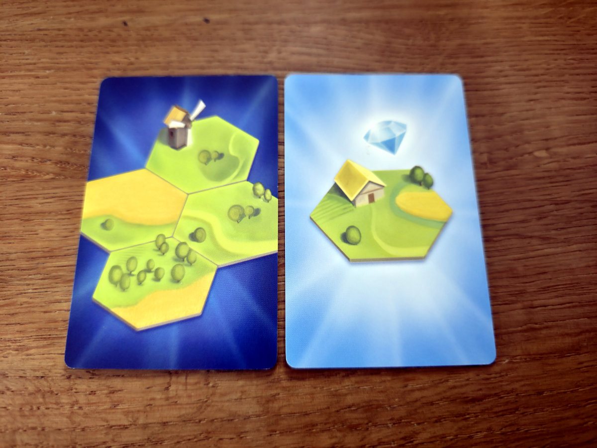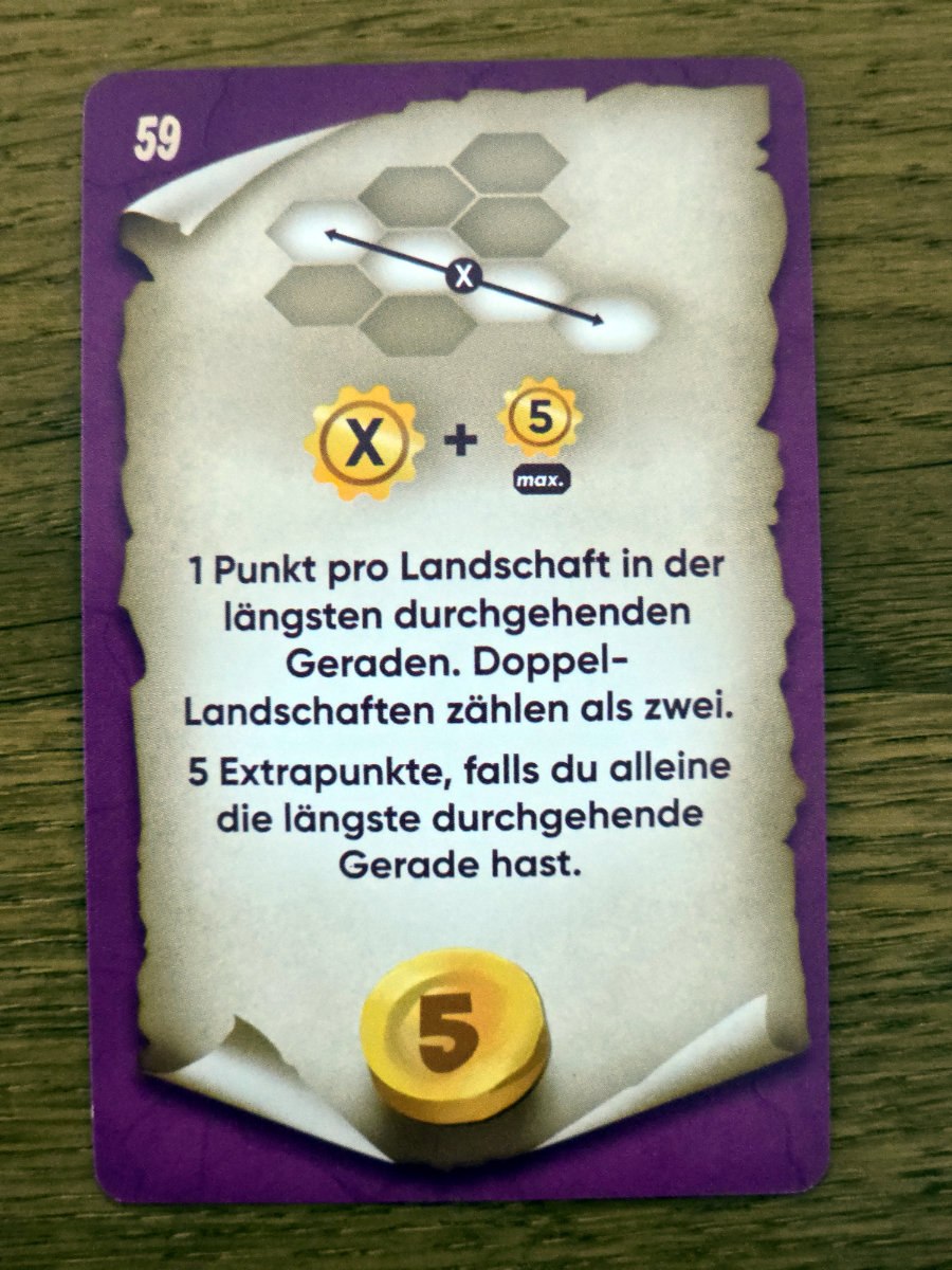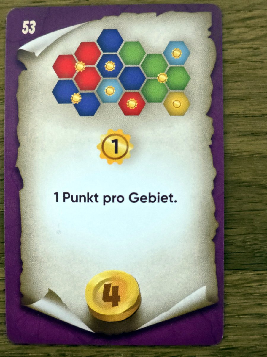 Die Endwertung ist klar und nachvollziehbar. Gebäude punkten abhängig von der Größe der angrenzenden Landschaftsgebiete, Kristalle zählen jeweils einen Punkt und bei Gleichstand gewinnt der Spieler mit den meisten Landschaften im Reich.