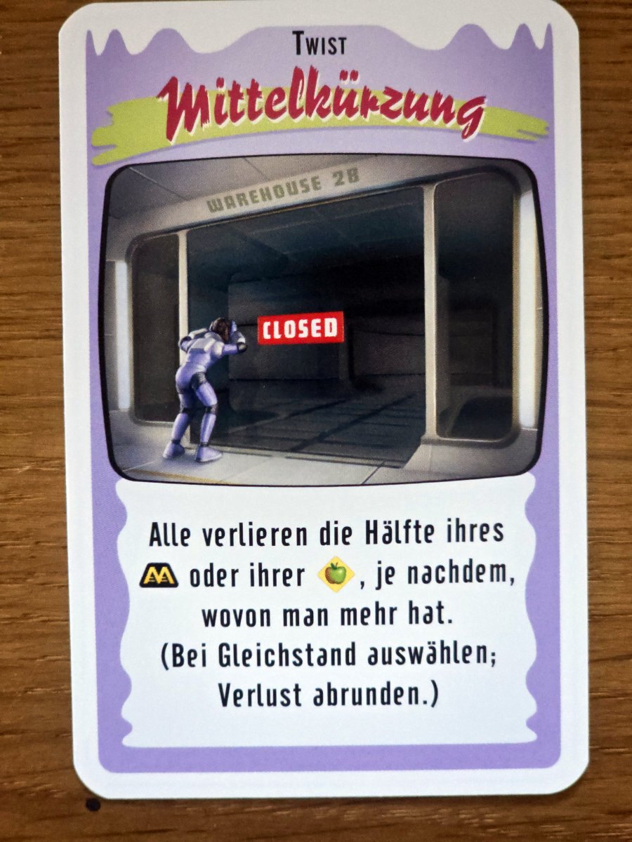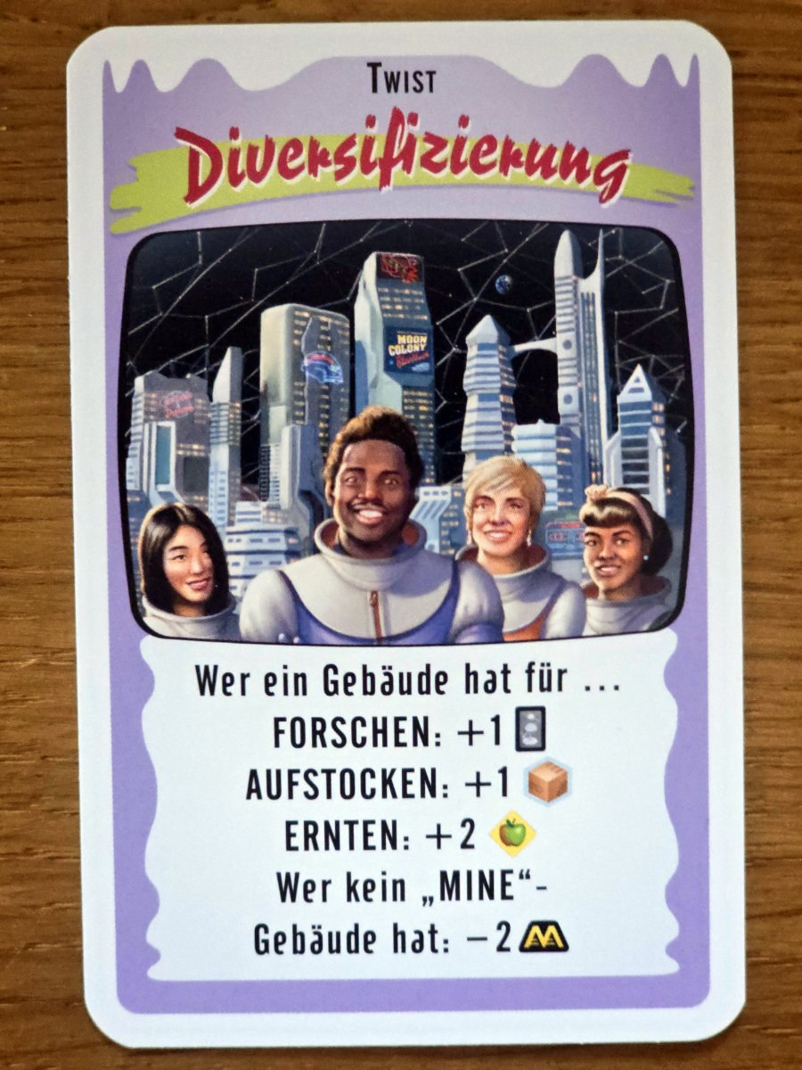 Der Ablauf ist ebenso elegant wie gnadenlos. Alle Spieler teilen sich ein zentrales Deck, das zu Beginn aus harmlosen „Work“-Karten, einigen „Trouble“-Karten und ein paar „Twists“ besteht. Jede Runde wird eine Karte aufgedeckt. Bei „Work“ führen alle gleichzeitig eine Aktion aus – etwa Erz abbauen, Nahrung produzieren, forschen, Gebäude errichten oder Vorräte auffüllen. „Trouble“ hingegen fügt dem Deck neue Katastrophen hinzu, wie Hunger, Stromausfälle, Lecks, Bürokratie oder technische Pannen – kurz, alles, was eine Mondkolonie ins Chaos stürzen kann. „Twists“ bringen zusätzliche, variierende Regeln ins Spiel, die jede Partie anders färben.