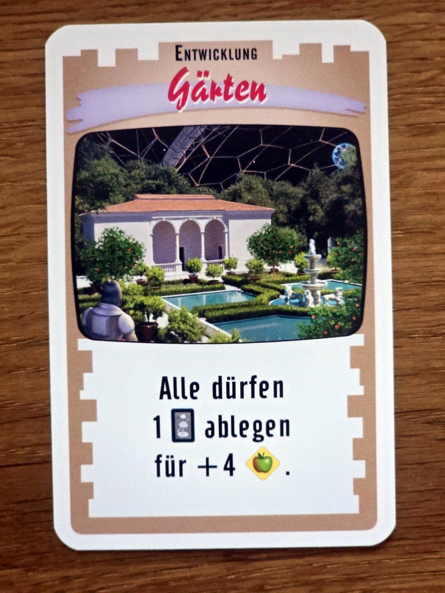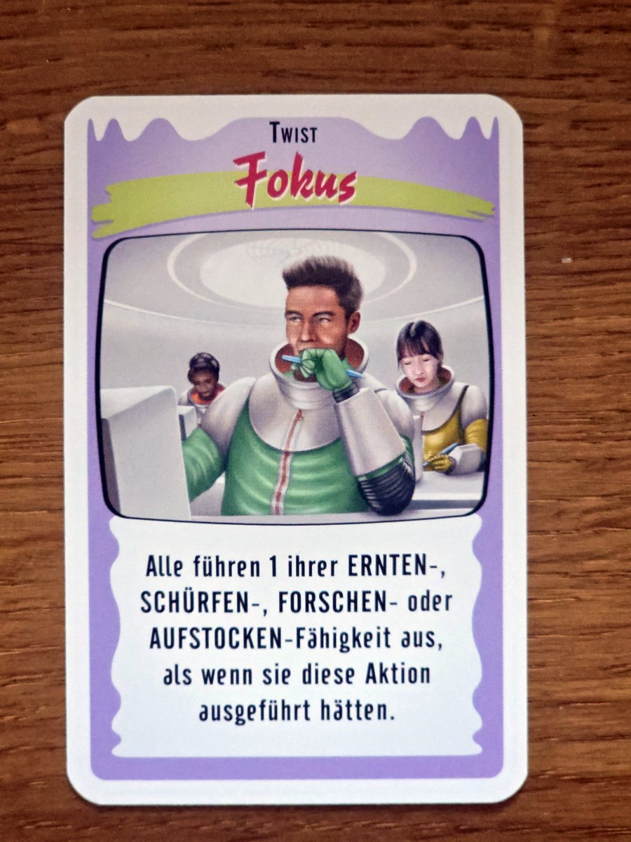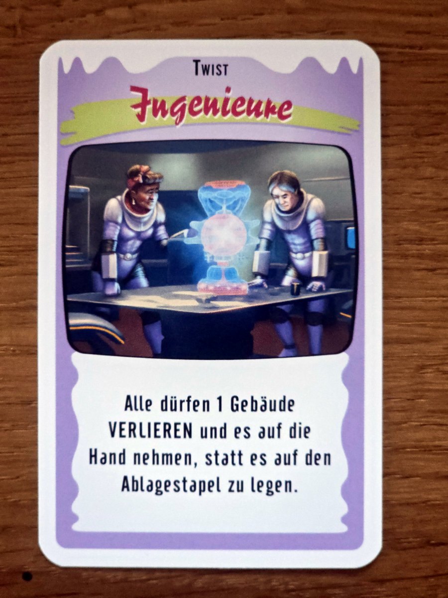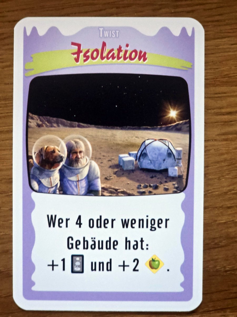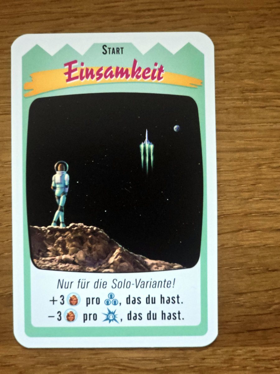 Das Besondere, die Spieler füttern dieses gemeinsame Deck selbst mit neuen Karten – mal mit Vorteilen, die nur ihnen zugutekommen, mal mit Entwicklungen, die alle betreffen. Dadurch entsteht ein faszinierendes Spannungsfeld: Man will seine Engine aufbauen, muss aber gleichzeitig mit den negativen Effekten leben, die man selbst oder andere ins System einspeisen. Das Spiel endet, wenn eine Kolonie keine Überlebenden mehr hat oder der Ereignisstapel aufgebraucht ist. Sieger ist, wer am meisten Menschen retten konnte.