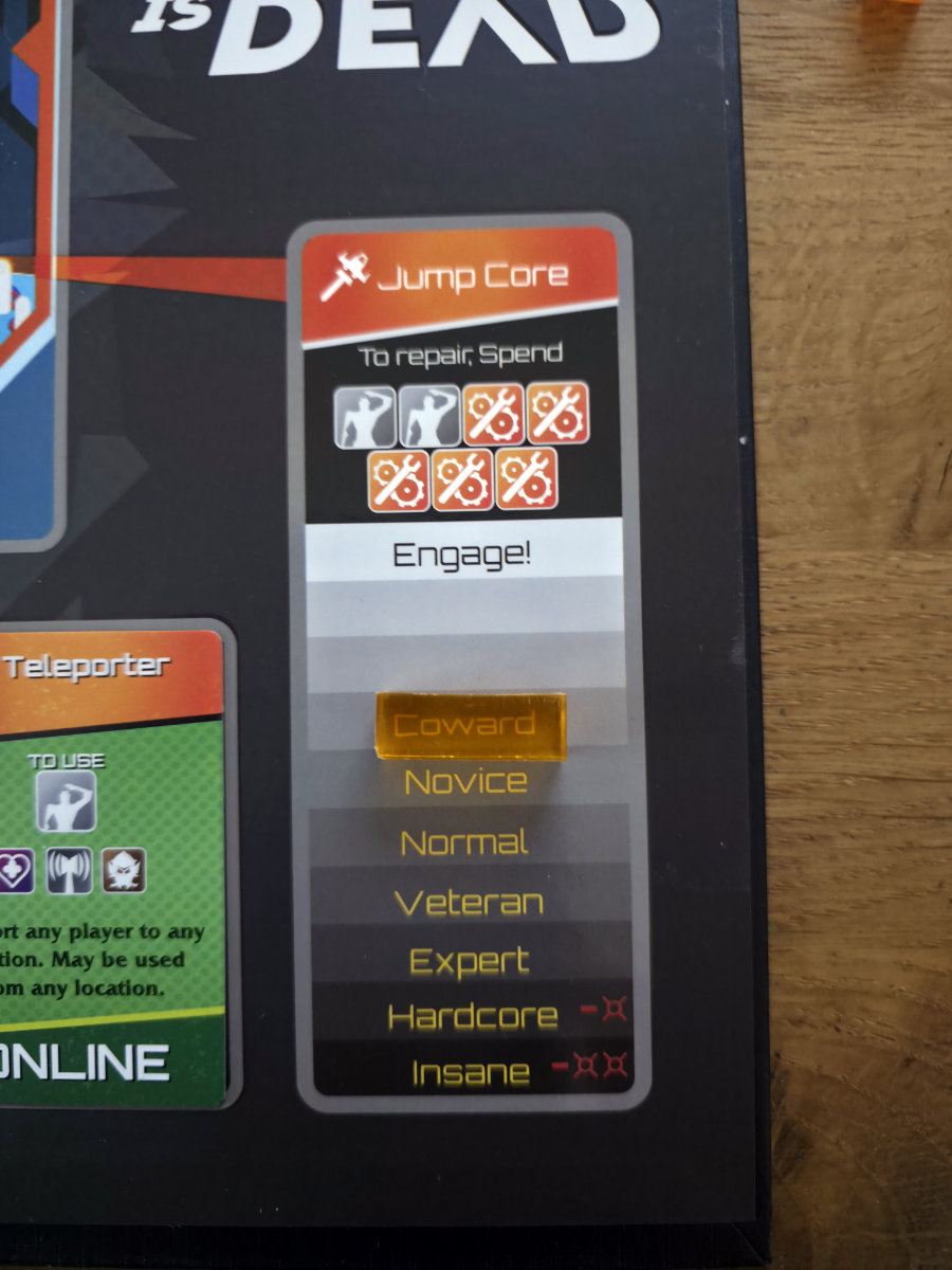 Gewonnen wird nur, wenn der Jump Core bis zur Stufe „Engage!“ hochrepariert wurde. Je nach Schwierigkeitsgrad braucht man dafür mehrere Reparaturen, die jeweils 5 Engineering kosten. Das bedeutet, das man das „Skill“-Kartendeck mehrfach durchspielen, effizient handeln und jede Aktion wertvoll machen muss. Und währenddessen brennt das Schiff weiter.