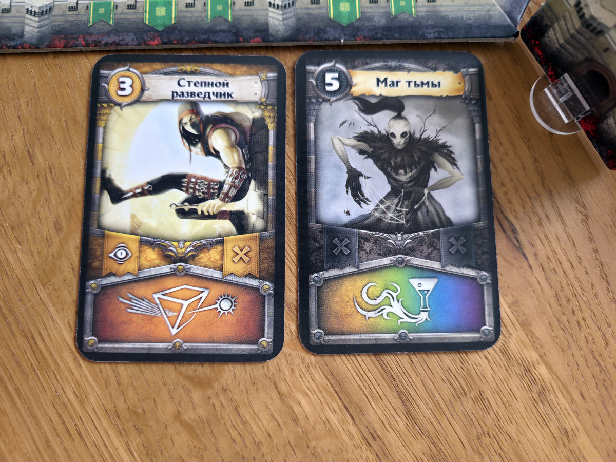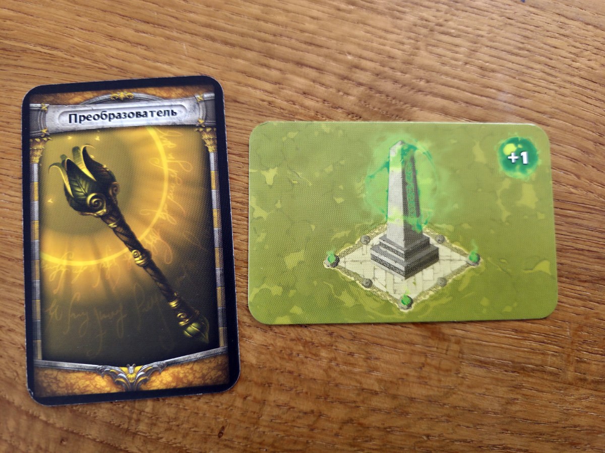 Zusätzlich gibt es Ritualkarten, die wie kleine Quests funktionieren. Um ein Ritual zu vollenden, muss ein Spieler einen Gegner einer bestimmten Farbe besiegen. Das Ritual wird dann zu einem permanenten Artefakt, das auf einem Fundament des Distrikts platziert wird und fortan einen dauerhaften Effekt bietet – etwa das Verbilligen bestimmter Feinde oder das Verstärken der eigenen Fähigkeiten. Diese Artefakte sind ein weiterer Baustein im strategischen Gefüge des Spiels und verleihen jeder Partie eine eigene Dynamik.