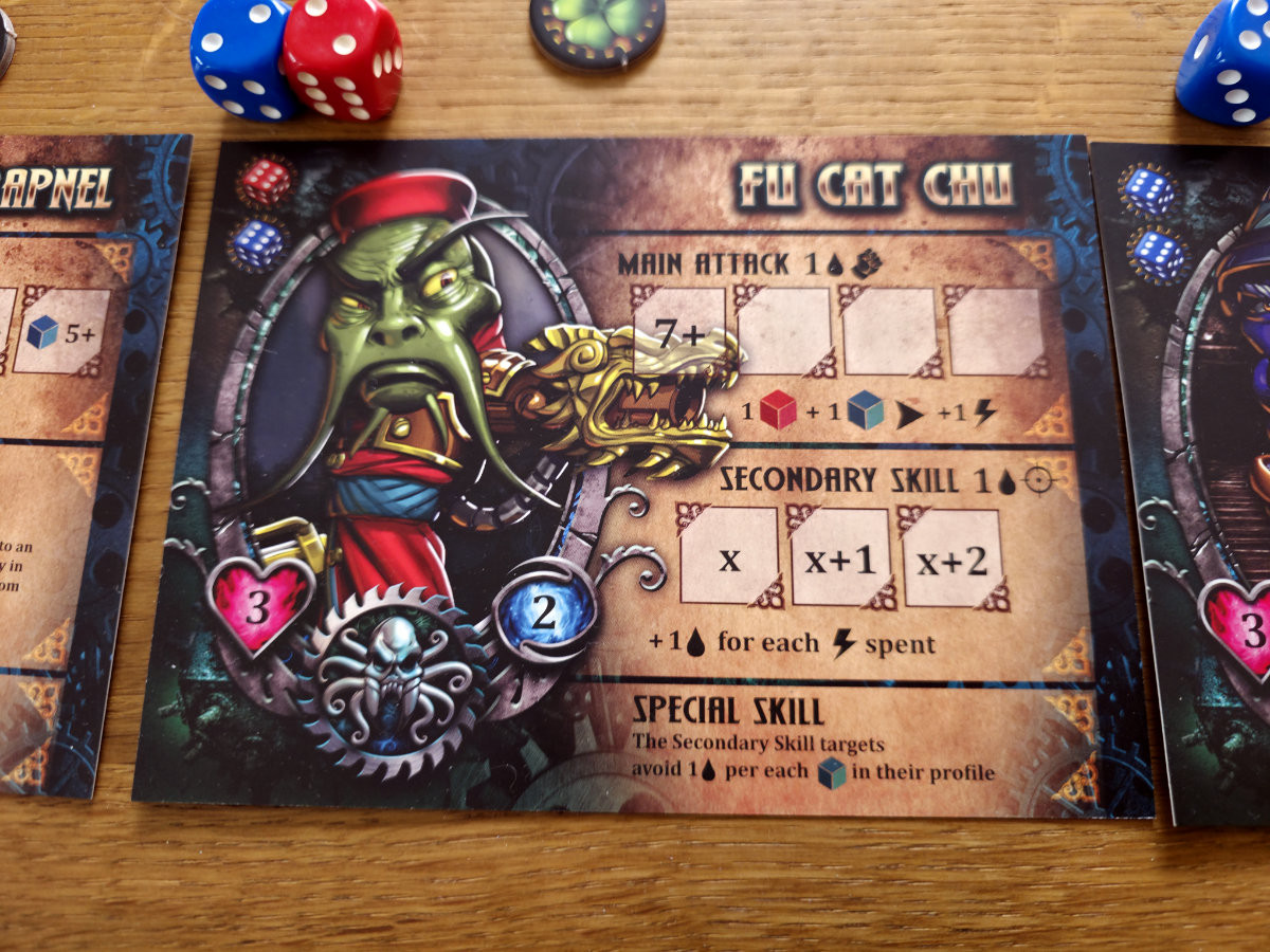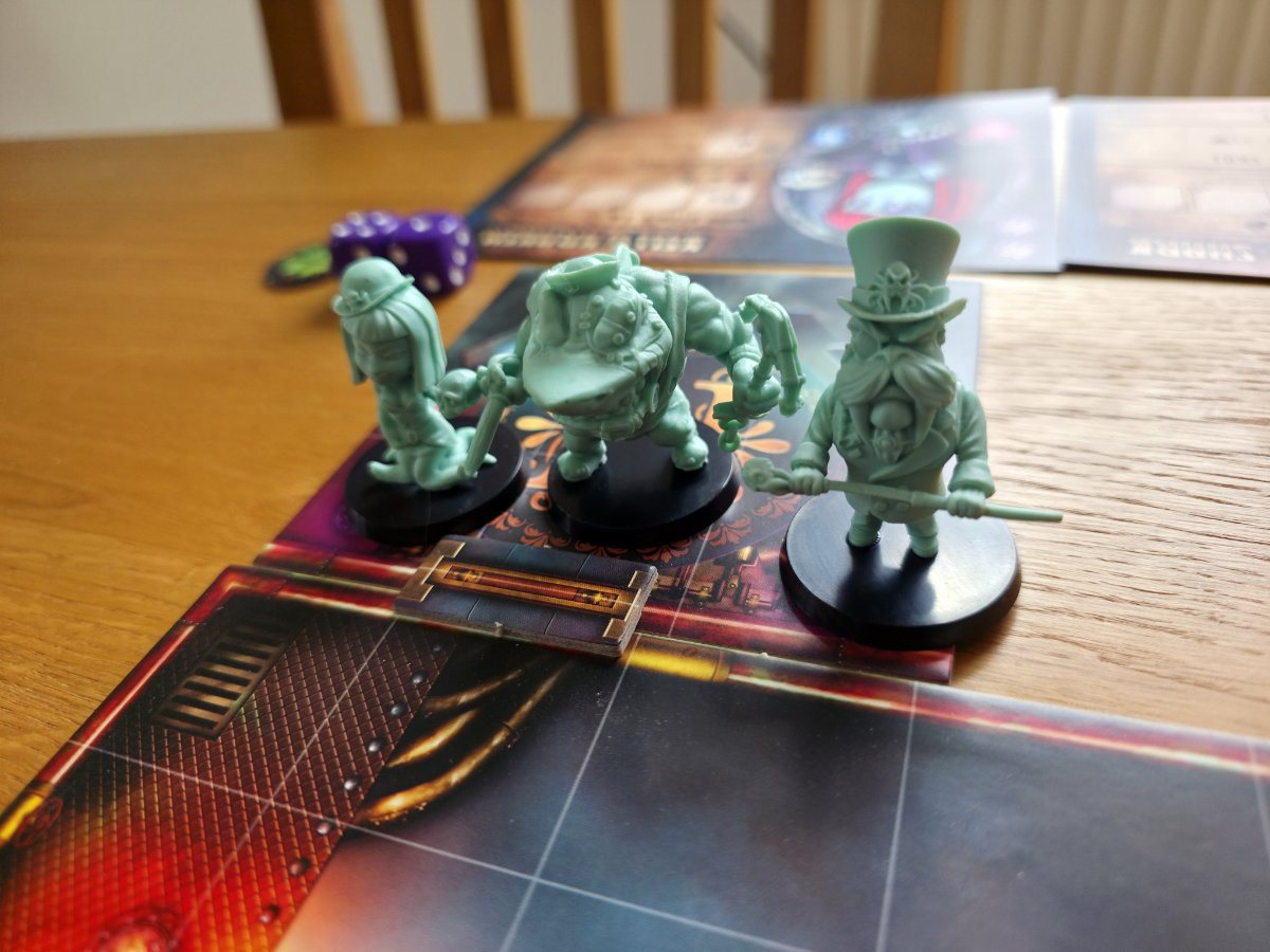 Thematisch verschlägt es die Spieler in die sogenannte Stygian Dimension, einen Ort, an dem sich viktorianische Mechanik, okkulte Energie und ein Hauch Lovecraft zu einem angenehm überdrehten Cocktail vermischen. Zwei Fraktionen prallen aufeinander – die Smog Riders und die Stygian Forces – und jede Seite bringt ihre eigenen Spezialisten, Eigenheiten und kleinen Marotten mit. Das Spiel lebt stark von dieser asymmetrischen Anlage. Figuren fühlen sich unterschiedlich an, ihre Fähigkeiten greifen anders ineinander und man merkt schnell, dass hier nicht einfach zwei Farbvarianten gegeneinander antreten, sondern zwei Welten mit eigener Identität.