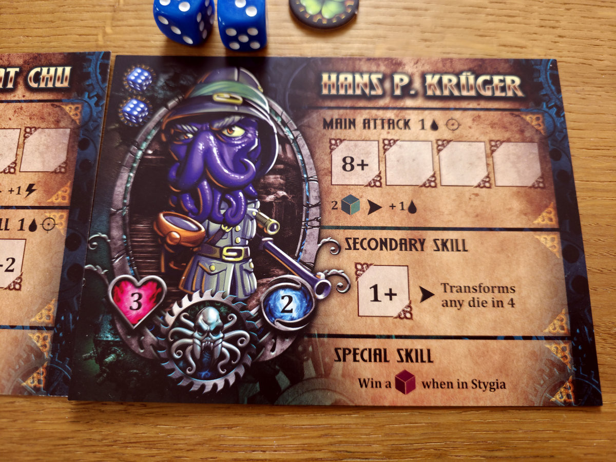 Natürlich hat das Spiel auch seine Ecken. Die Einstiegshürde ist niedriger als bei vielen Genrevertretern, aber immer noch hoch genug, um Gelegenheitsspieler abzuschrecken. Die Regeln sind klar, aber nicht immer elegant und manche Fähigkeiten wirken im ersten Moment stärker, als sie sich später tatsächlich spielen. Außerdem bleibt das Spiel ein Nischentitel – wer hier ein großes, breit diskutiertes System erwartet, wird enttäuscht. „Dimensions of Madness“ ist eher ein Geheimtipp, ein Spiel, das man entdeckt, nicht eines, das einem überall begegnet.