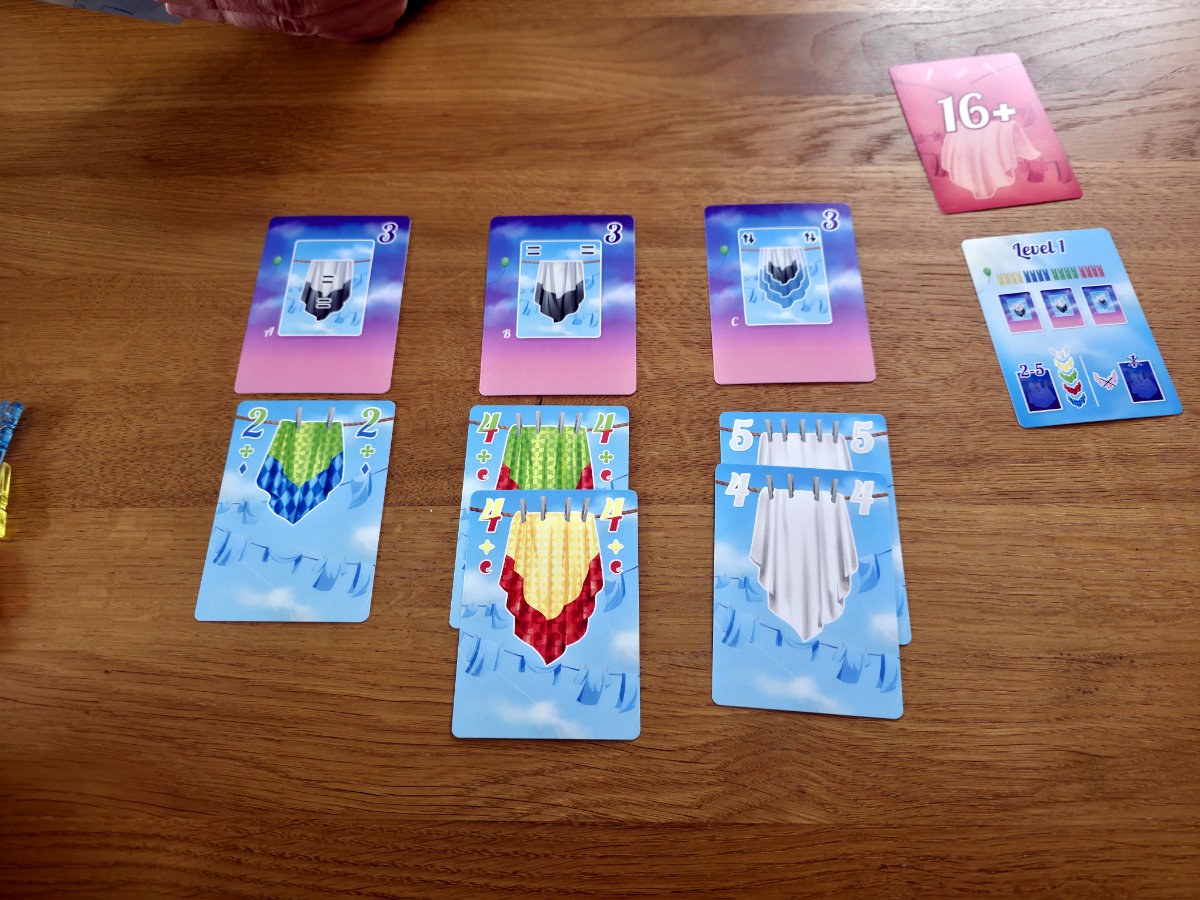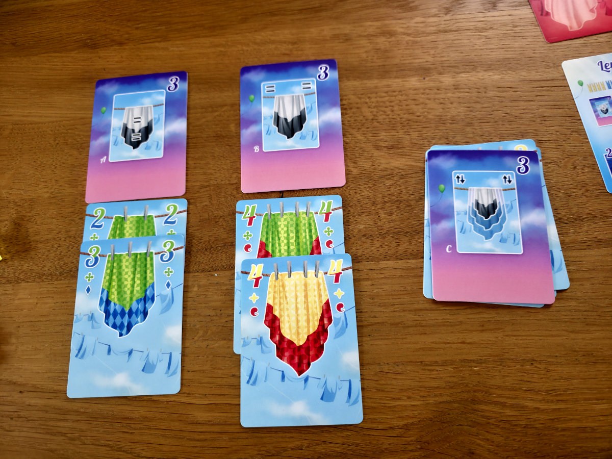 Die Aufträge geben vor, welche Stoffe benötigt werden. Gleiche Farbkombinationen, identische Zahlen, Reihenfolgen oder später sogar Spezialaufträge, die das Team auf neue Denkpfade schicken. Wird eine Karte gelegt, entscheidet sich sofort, ob sie den Auftrag erfüllt oder die Wäscheleine weiter belastet. Zu viele Fehler – und das Spiel endet abrupt, die Leine reißt und alle verlieren gemeinsam. Doch gelingt es, die Aufträge sauber abzuarbeiten, winken Boni, die das Team entlasten und das Gefühl verstärken, gemeinsam etwas wirklich Kniffliges gemeistert zu haben.