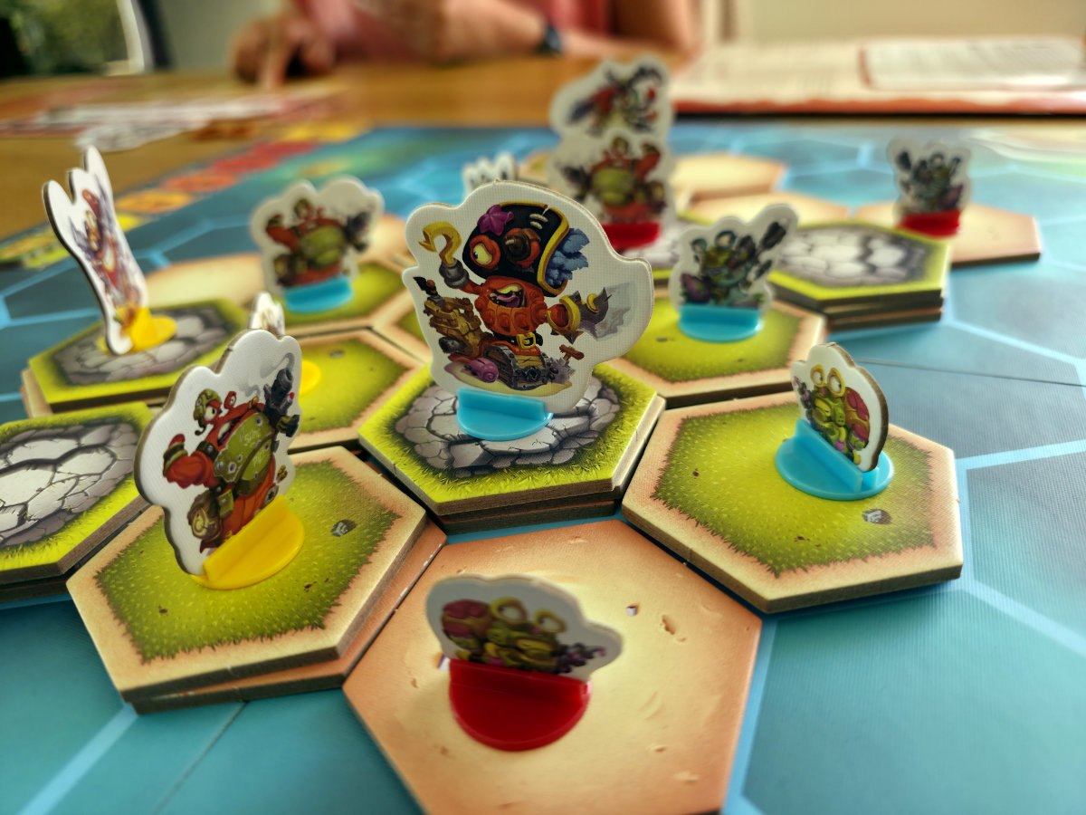 Jede Aktion kann das Terrain verändern, Schnecken verschieben, Marker auslösen oder ganze Inselteile versenken. „Snails“ ist ein Spiel, in dem der Boden buchstäblich unter den Füßen wegbricht.