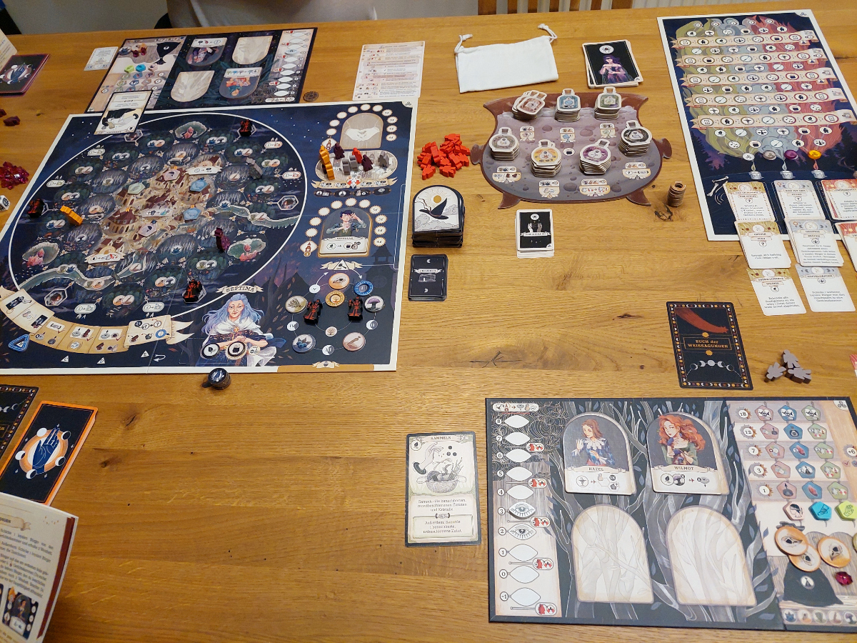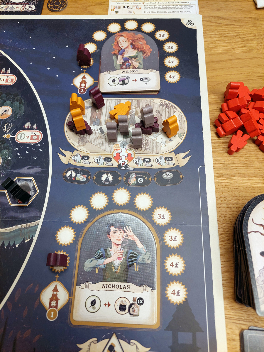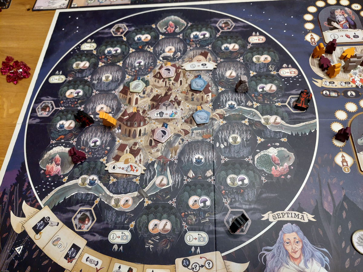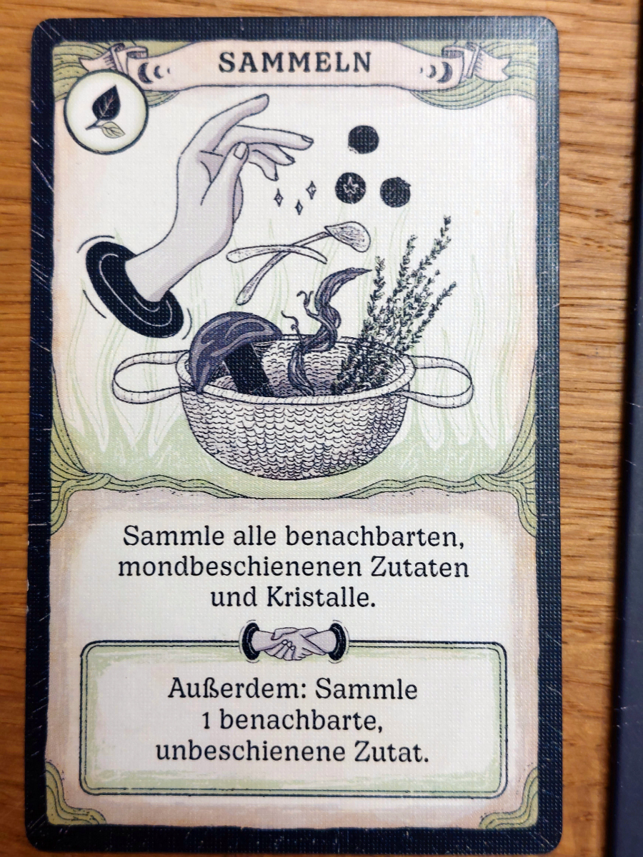Spannend bleibt auch das Sammeln von Ressourcen. Denn hier wird nicht einfach Feld für Feld oder Aktion für Aktion abgegrast, wie man es sonst kennt. Hier lohnt es sich nur phasenweise, unterschiedlich „mondbeschienene“ Pflanzen zu sammeln. Damit wird eine gewisse Abwechslung garantiert und die Spieler von sich wiederholenden Pfaden abgehalten.