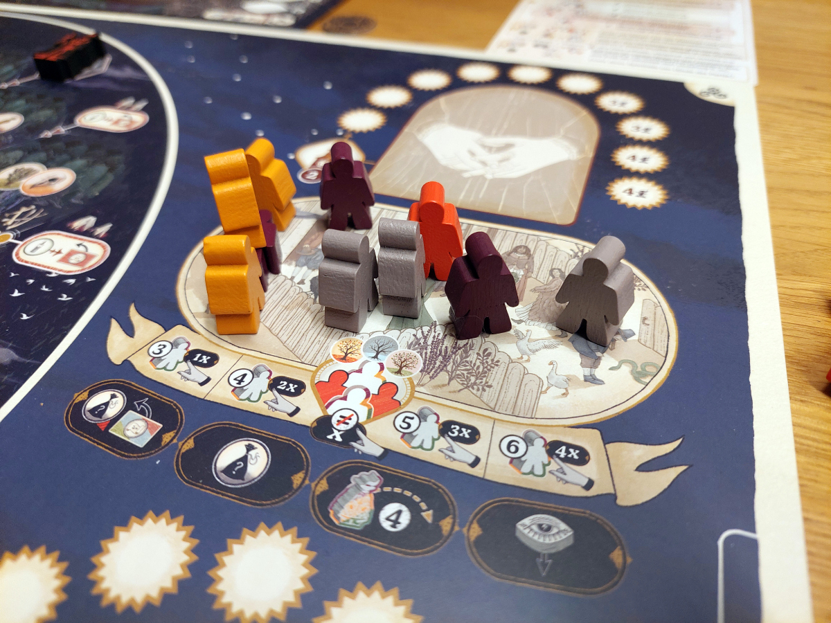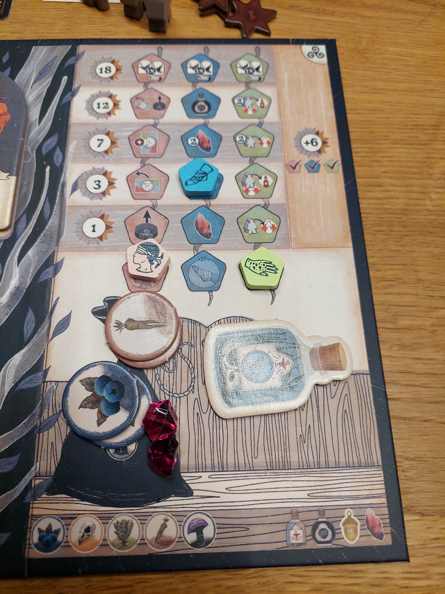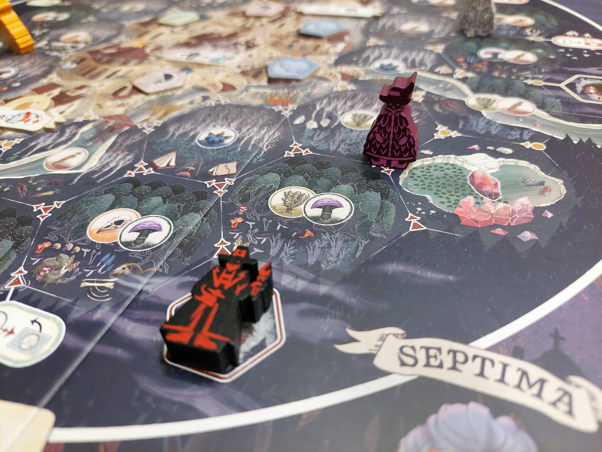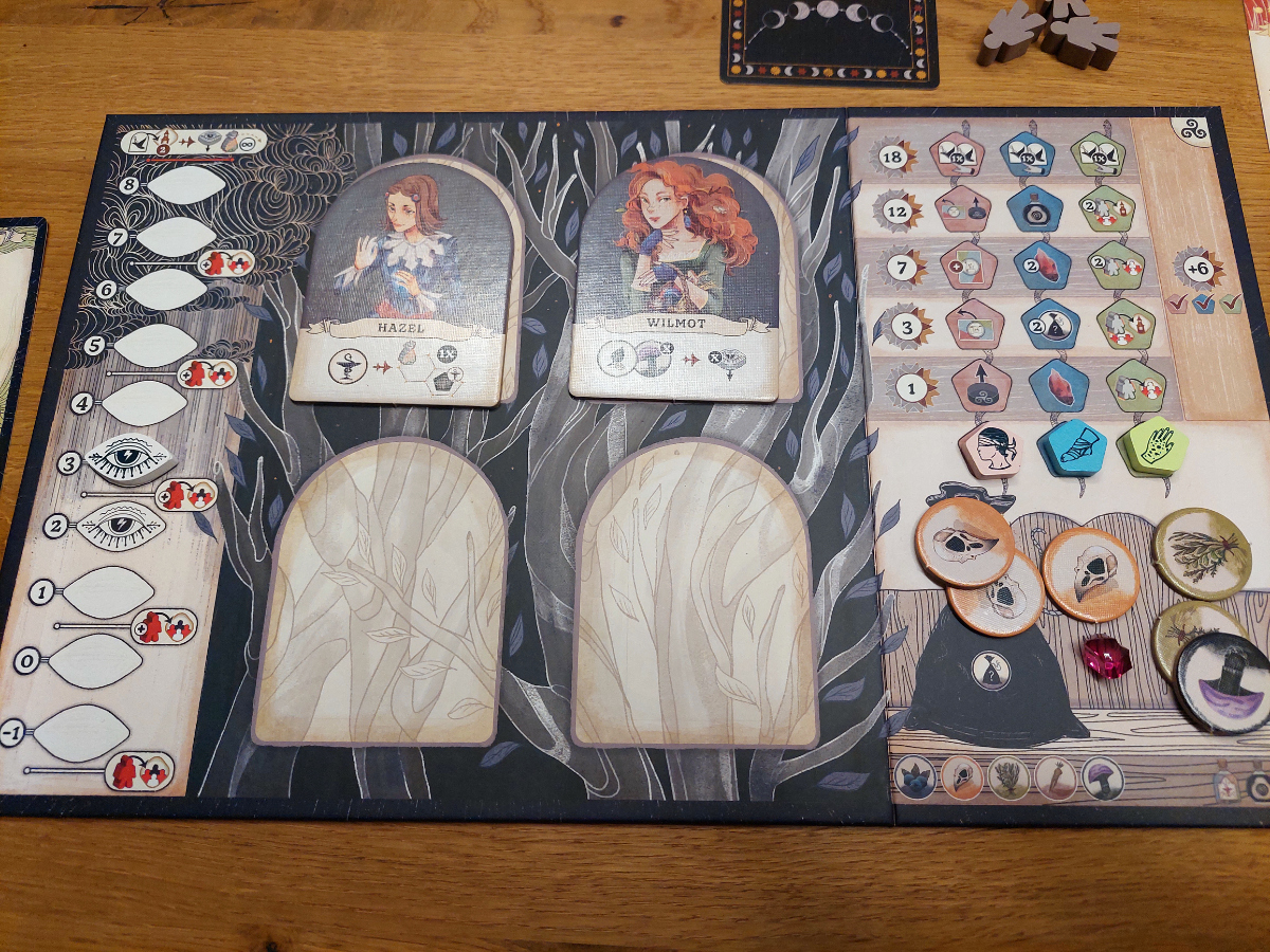 Spannend bleibt auch das Sammeln von Ressourcen. Denn hier wird nicht einfach Feld für Feld oder Aktion für Aktion abgegrast, wie man es sonst kennt. Hier lohnt es sich nur phasenweise, unterschiedlich „mondbeschienene“ Pflanzen zu sammeln. Damit wird eine gewisse Abwechslung garantiert und die Spieler von sich wiederholenden Pfaden abgehalten.