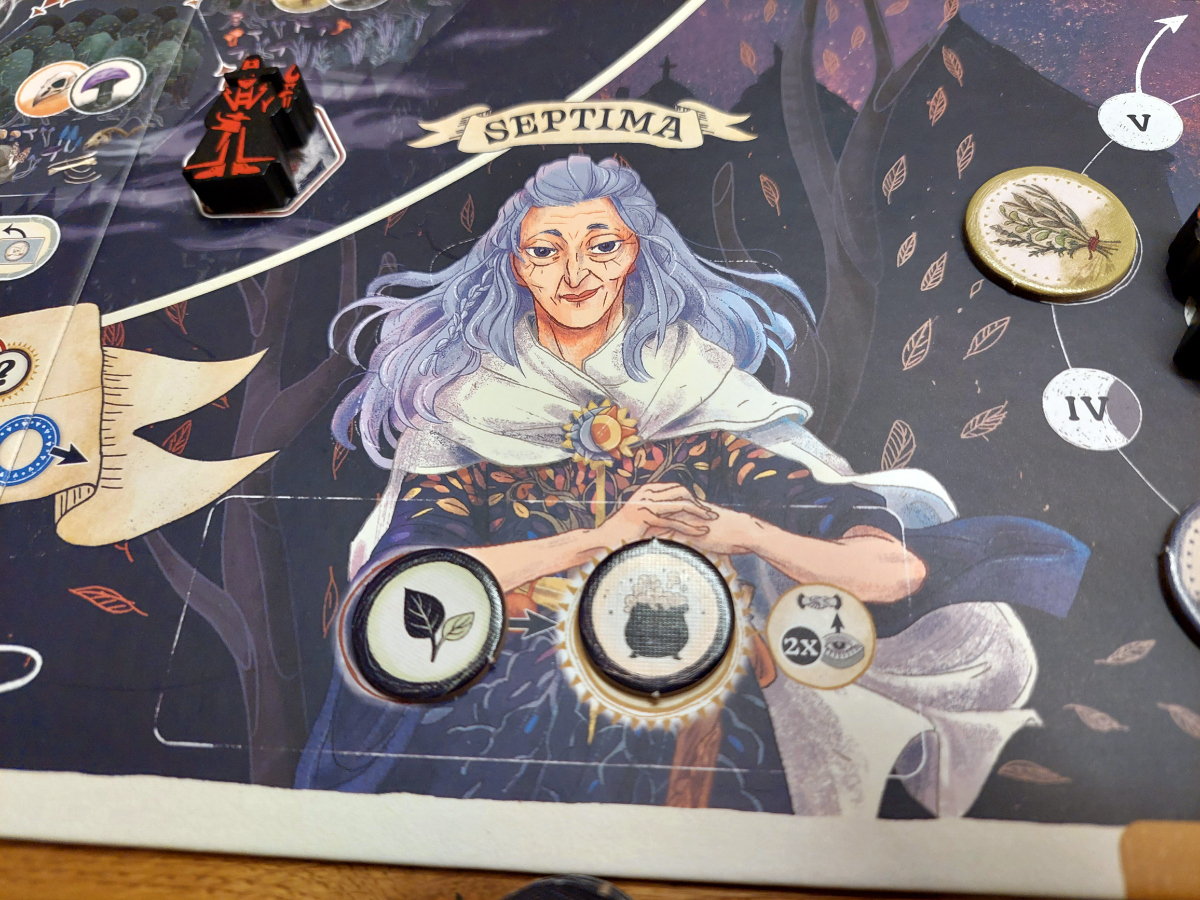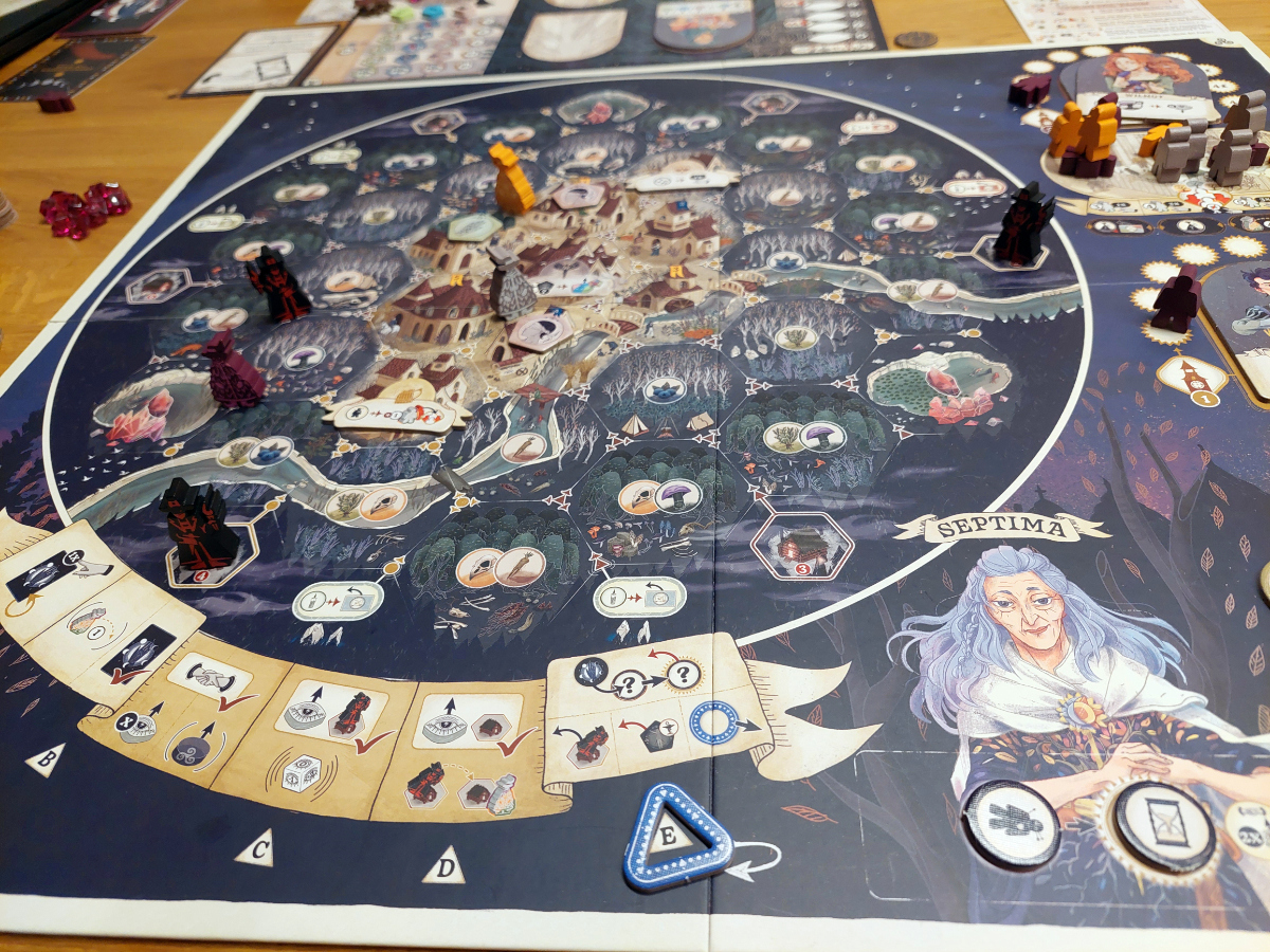Die Spieler wetteifern um die Gunst der dahinsiechenden Septima und versuchen zugleich, die Dorfbevölkerung von Noctenburg vertrauensvoll zu umgarnen.