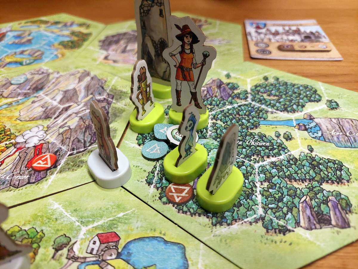 Namensgebend geht es hier um Mystik und Wissenschaft, vereint in der sagenumwobenen Alchemie. Die Spieler entwickeln Rezepte für Tränke, sammeln Ressourcen und begeben sich auf die Suche nach dem Stein der Weisen. Im Wettstreit mit den Mitspielern geht es dann auch darum den anderen Wege zu versperren, z.B. zu wertvollen Minen hin. Gegenstände wollen erstellt und Kreaturen beschworen werden, um beim Vorankommen zu helfen. Hierzu braucht es eben bestimmte Minerale, die auch transportiert werden müssen, und die ebenfalls nötigen Karten dazu müssen erworben werden.