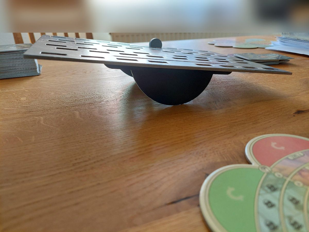 Der Prototyp bietet schon einen guten Eindruck zum Spielmaterial – die Wippe allein ist eine tolle Idee! Lediglich die Anleitung benötigt noch einige Überarbeitung, da sich hier vieles nur Spielerfahrenen darstellt und das erst im Spiel selbst erklärt.