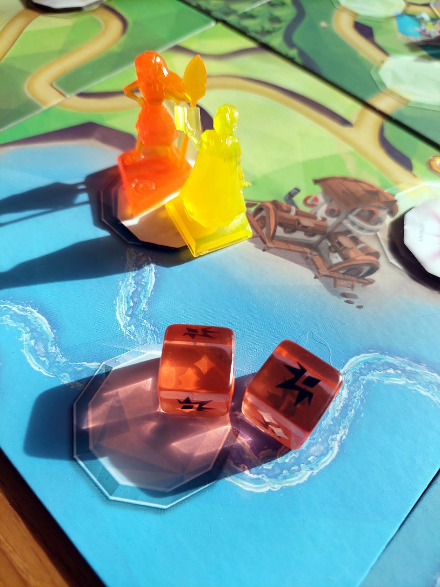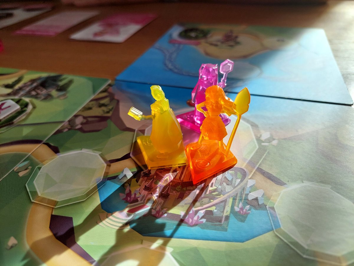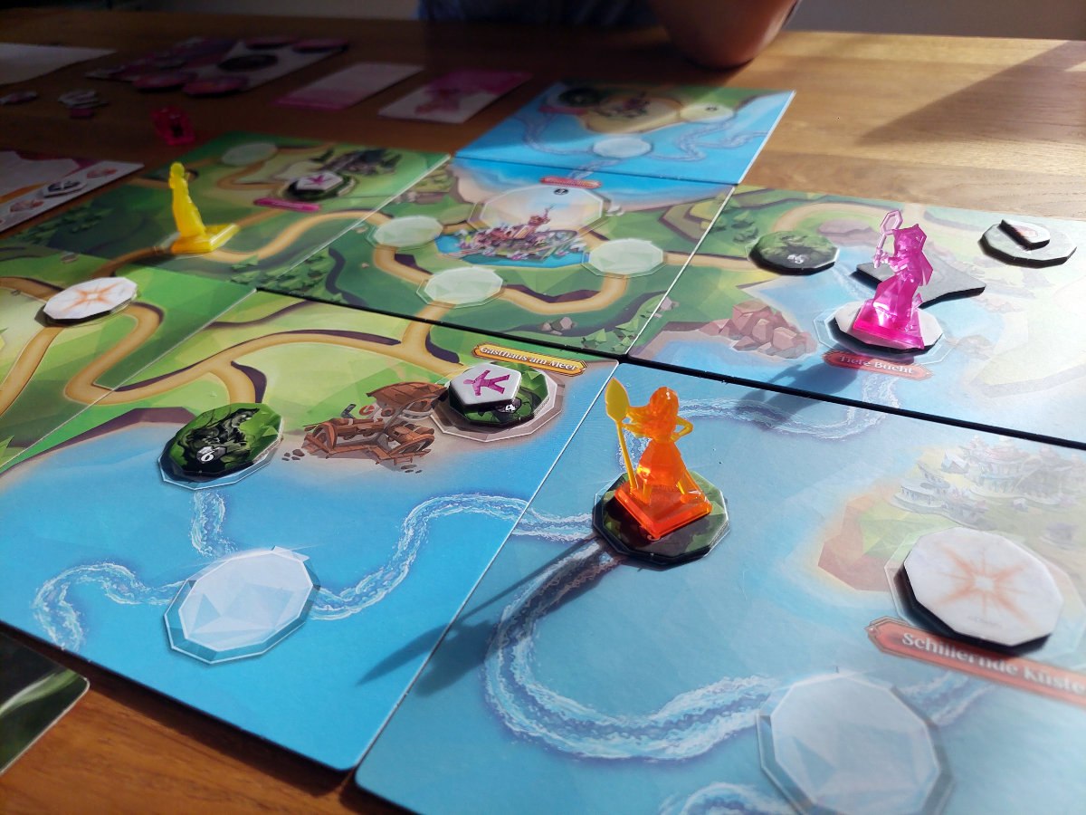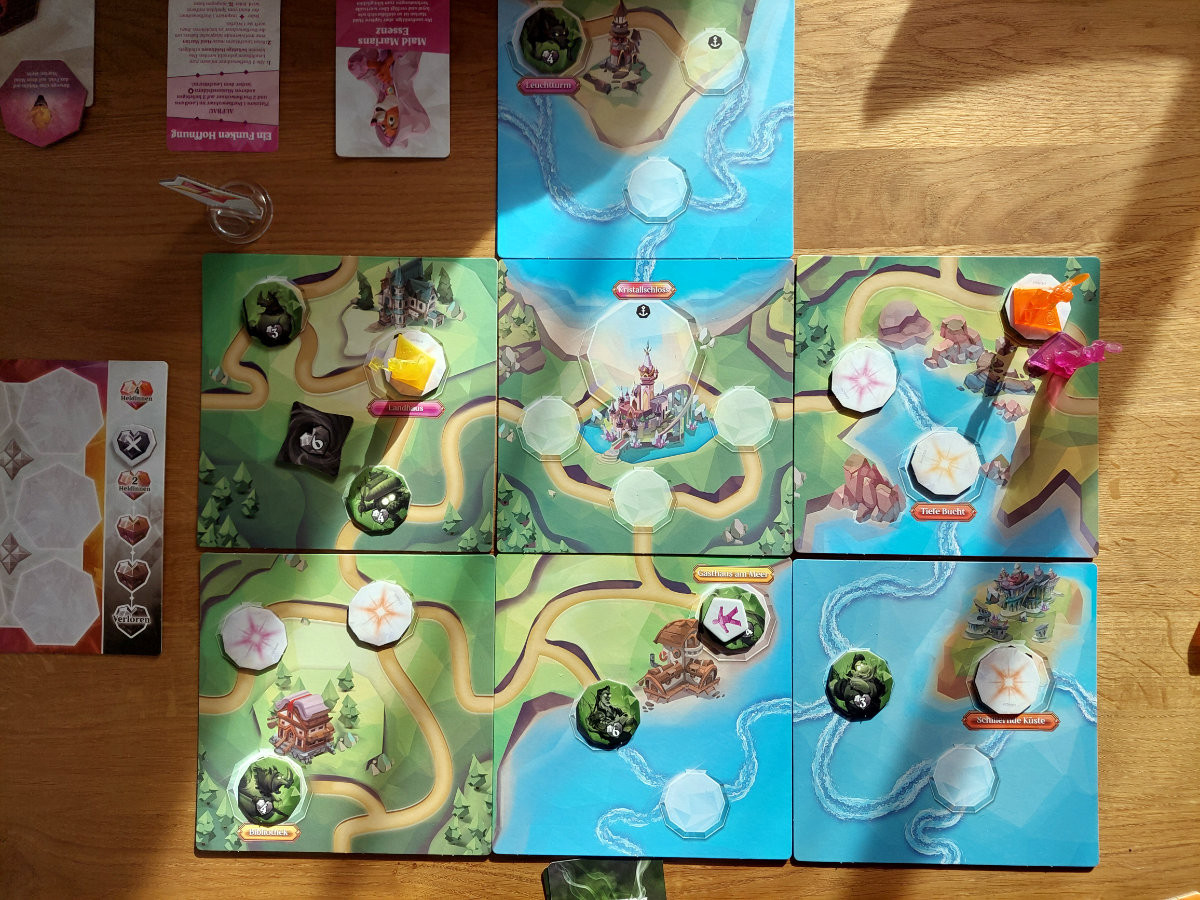 Im Reich des Lichts gilt es Missionsorte anzureisen, um bestimmte Aufgaben zu erledigen. Jede Heldin hat hier ihre eigenen Vorgaben (1 aus 4 Missionskarten pro Spiel), die sie erfüllen muss, bevor sie sich der sich verbreitenden Dunkelheit in Form eines Vortexes stellt. Dies muss eine Heldin nicht alleine schaffen. In kooperativer Weise wird versucht die Aufgaben in passender Reihenfolge zu absolvieren und quasi nebenher geschaut, dass die fiesen Schattenmonster nicht das Land überrennen.