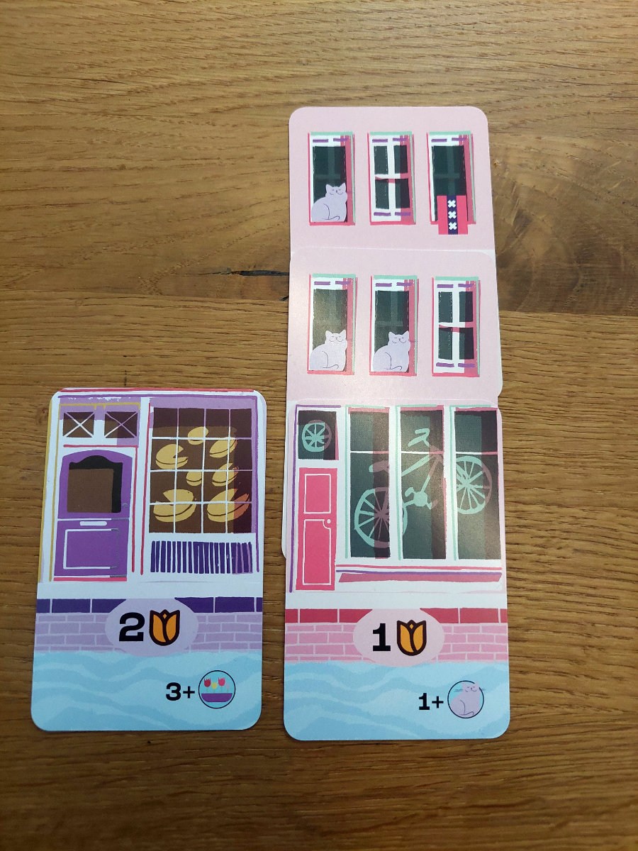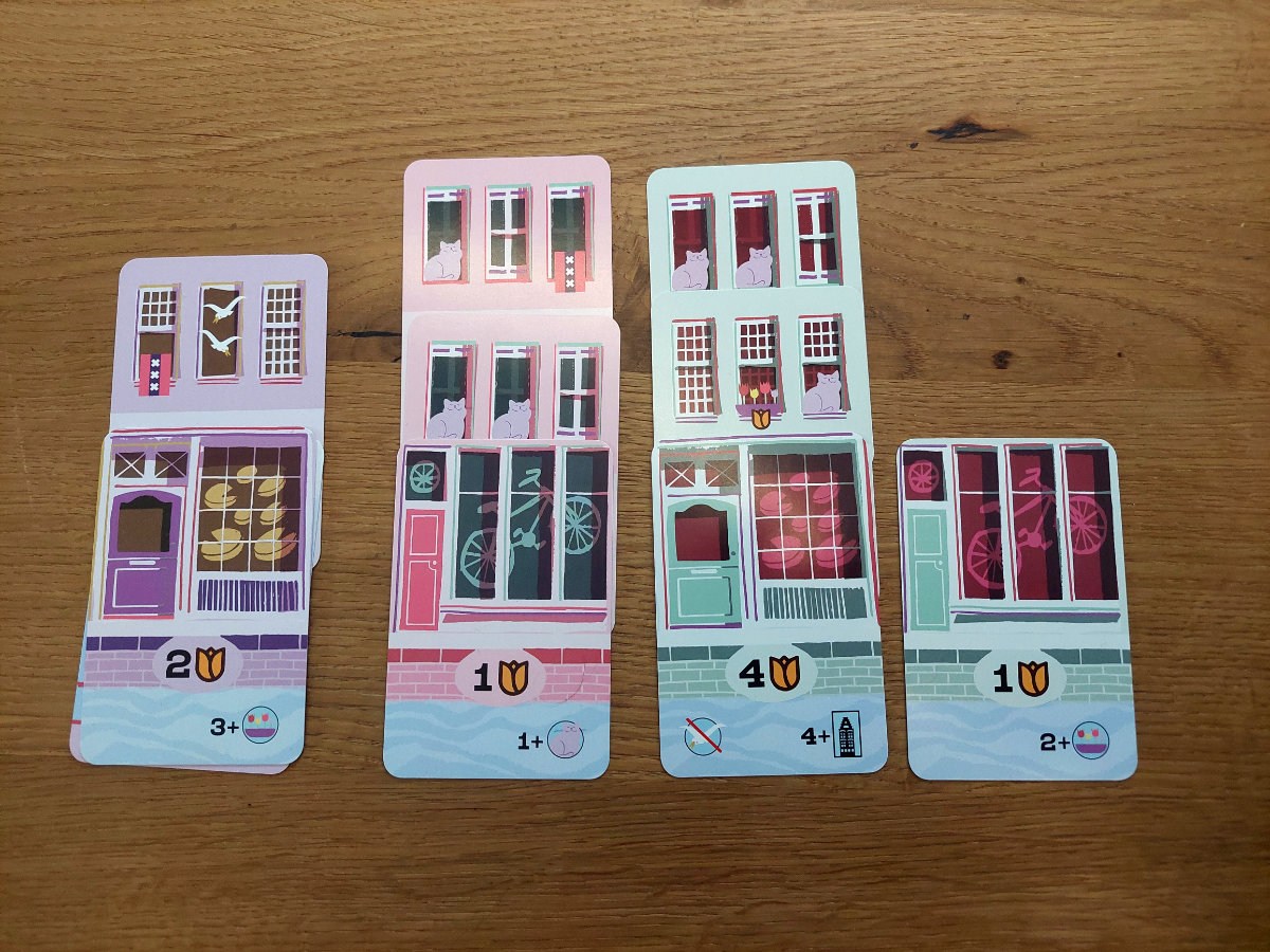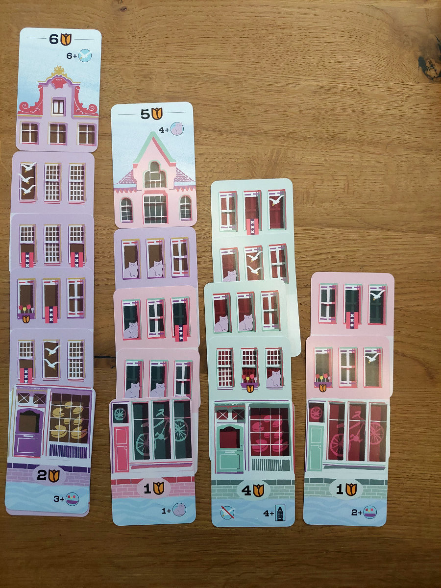 Auf allen Karten können sich Katzen, Tauben, Fahnen und Tulpen in unterschiedlicher Zahl befinden. Diese zählen, je nach zufälligen Siegpunkte-Bedingungen (Planungsboni), in Sets oder Mehrzahl entsprechend Punkte. Wobei die Tulpen so eine Art Hauptpunkte sind, die nur dann zählen, wenn bestimmte Voraussetzungen innerhalb eines Kartenhauses erfüllt sind.