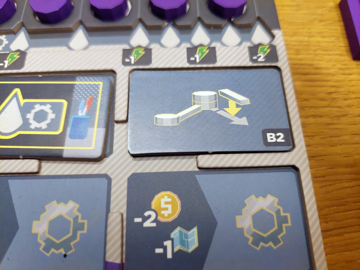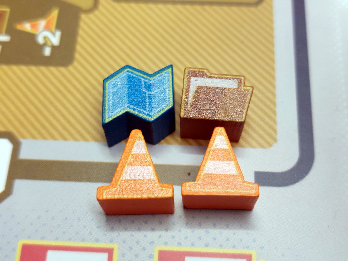 Soweit im großen und ganzen. Erwähnenswert ist noch, dass die Ressourcen begrenzt sind, von den Auslagen immer von links weggenommen werden und auf dem eigenen Spielertableau nur Platz für 8 von ihnen ist. Bautrupps sind kostenlos und daher meist das Ziel für einen ersten Besuch. Die Varianten für 1 und 2 Spieler lassen noch einen „Automa“ mitspielen.
