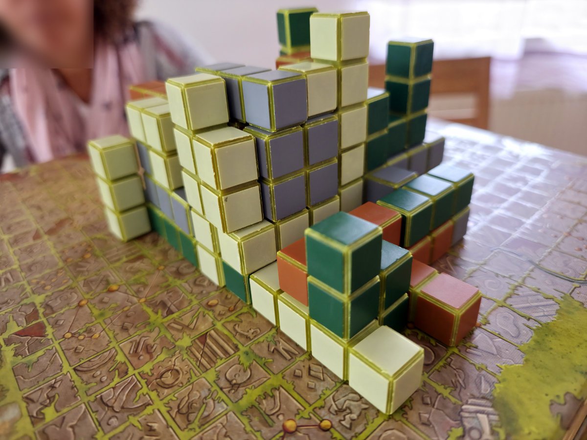 Rundum aber ein feines Spiel, wenn man sich darauf einlässt und frustresistent nicht so sehr darüber nachdenkt, sondern einfach die schicken Steine verbaut und am Ende schaut, was dabei rumkam^^.