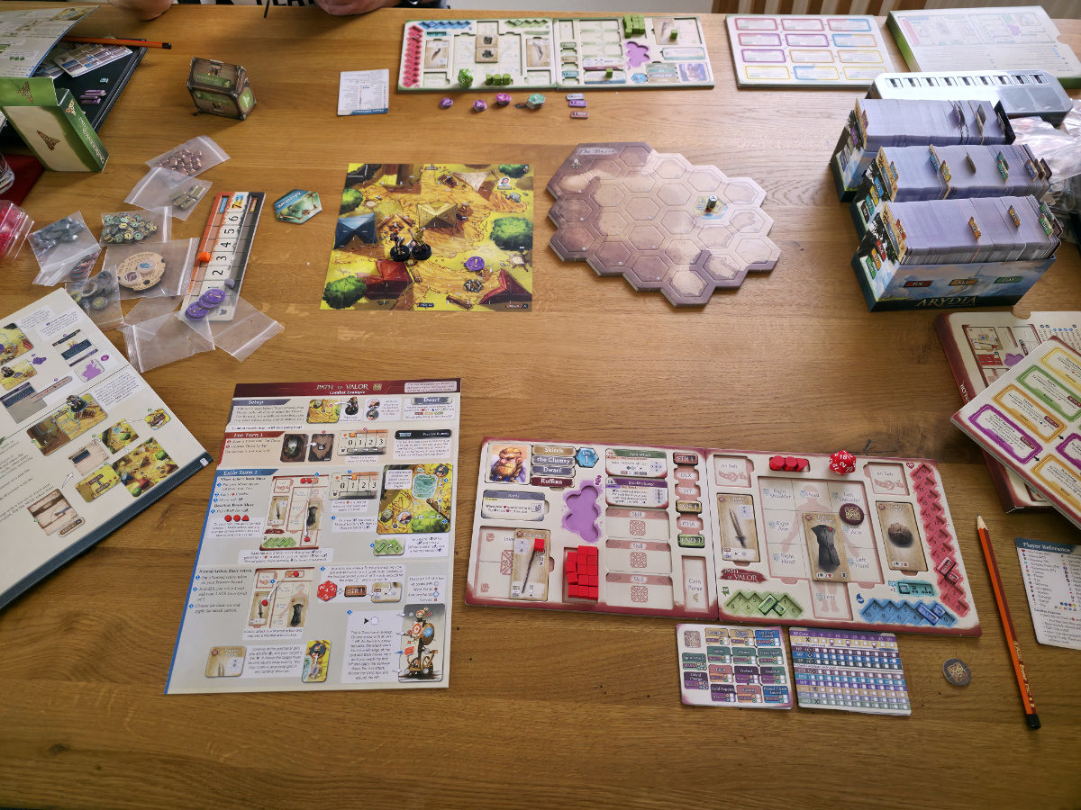 Die Atmosphäre von Arydia liesse sich z.B. mit Gloomhaven vergleichen, hebt sich jedoch durch die stärkere Teambildung (auch mit NPCs) ab. Die Spieler erleben eine Welt, die sich durch Entscheidungen verändert, wodurch eine hohe Wiederspielbarkeit gewährleistet wird – wobei hier erst einmal viele Stunden Spiel anstehen, bevor man an ein erneutes Abenteuer (von vorne beginnend) zu denken braucht. Viele, viele, viele, viele Spielkarten sorgen hierbei für Abwechslung.