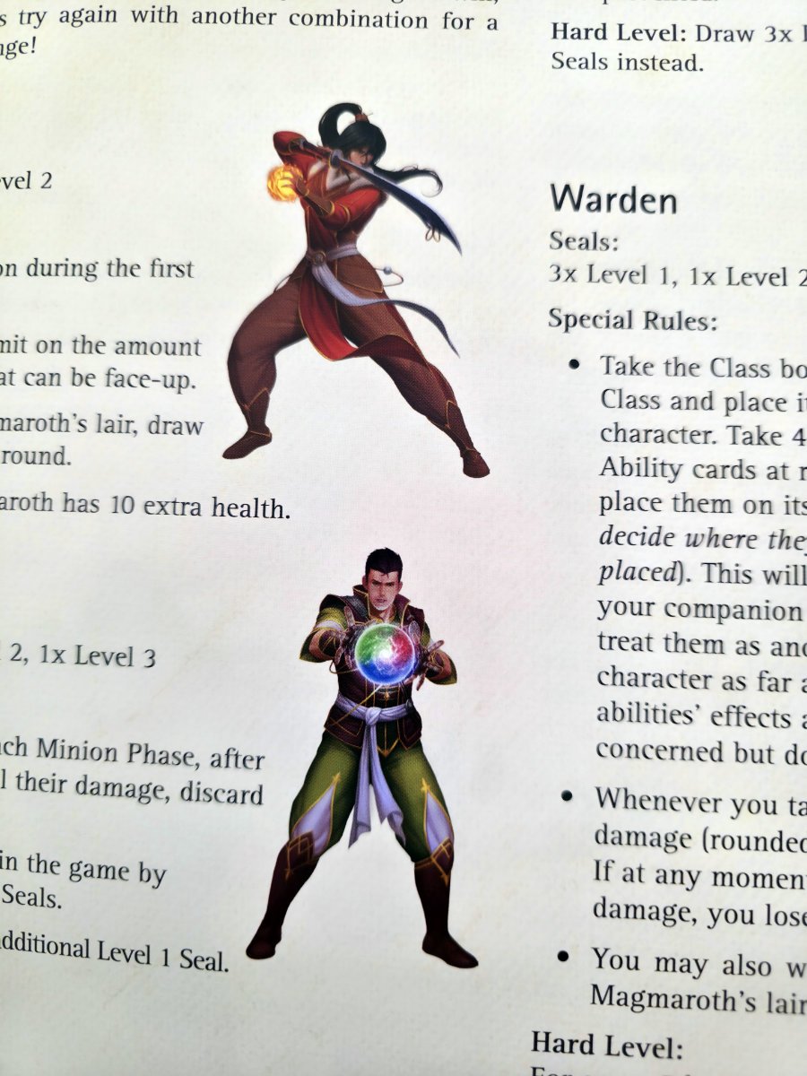 Nach neun Runden erreicht die Gruppe schließlich Magmaroths Lair. Ab hier wird das Spiel härter, direkter, brutaler. Die Seals – magische Barrieren, die Magmaroth schützen – entfalten nun ihre Effekte. Manche erhöhen seine Lebenspunkte, andere erschweren Aktionen oder verstärken die Minions. Die Spieler müssen diese Siegel brechen, indem sie Mana investieren, das sie über mehrere Runden ansammeln können. Gleichzeitig greifen nun sowohl Minions als auch Magmaroth selbst an. Die Anleitung bringt es trocken auf den Punkt: „Magmaroth attacks along with the Minions.“. Am Tisch fühlt es sich an wie ein verzweifelter Endkampf, bei dem jede Entscheidung zählt.