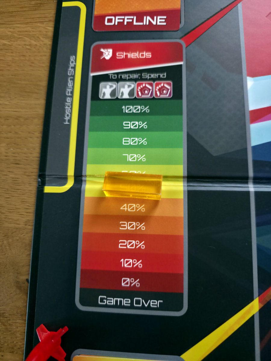 Jedes System auf dem Spielplan hat eine Funktion, die das Überleben erleichtert – solange es online ist. Und genau das ist der Knackpunkt. Systeme gehen ständig offline. Die Teleporterstation, die wertvolle Bewegungsaktionen spart. Die Computer, die neue „Skill“-Karten liefern. Die Comm Station, die das Tauschen von Karten über Distanz erlaubt. Die Schilde, die das einzige Polster gegen den Untergang sind. Und natürlich der Jump Core, dessen Reparatur das einzige Siegziel darstellt.